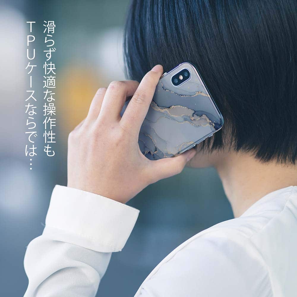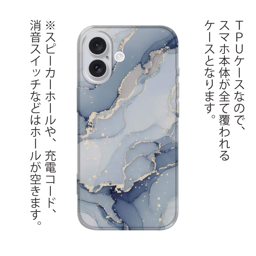【TPU】くすみカラーマーブル調 ブルー&ゴールド