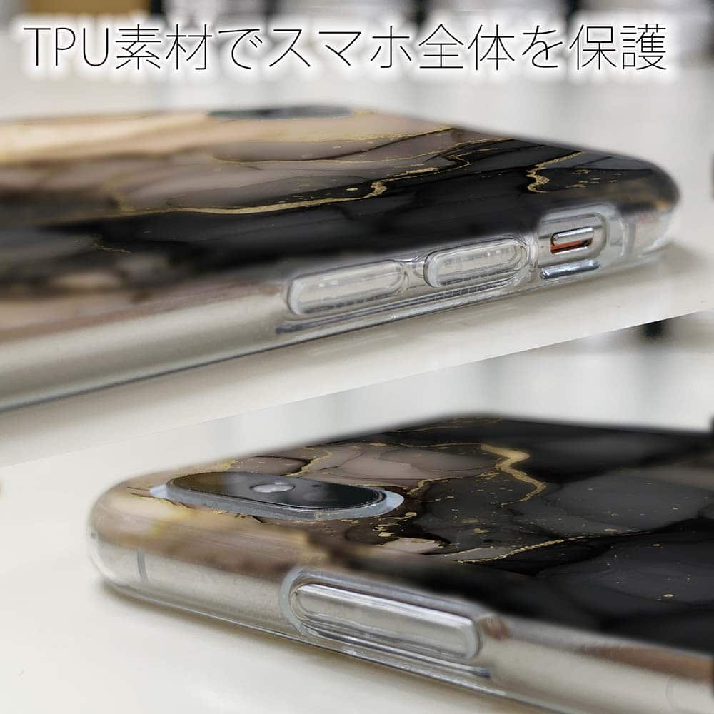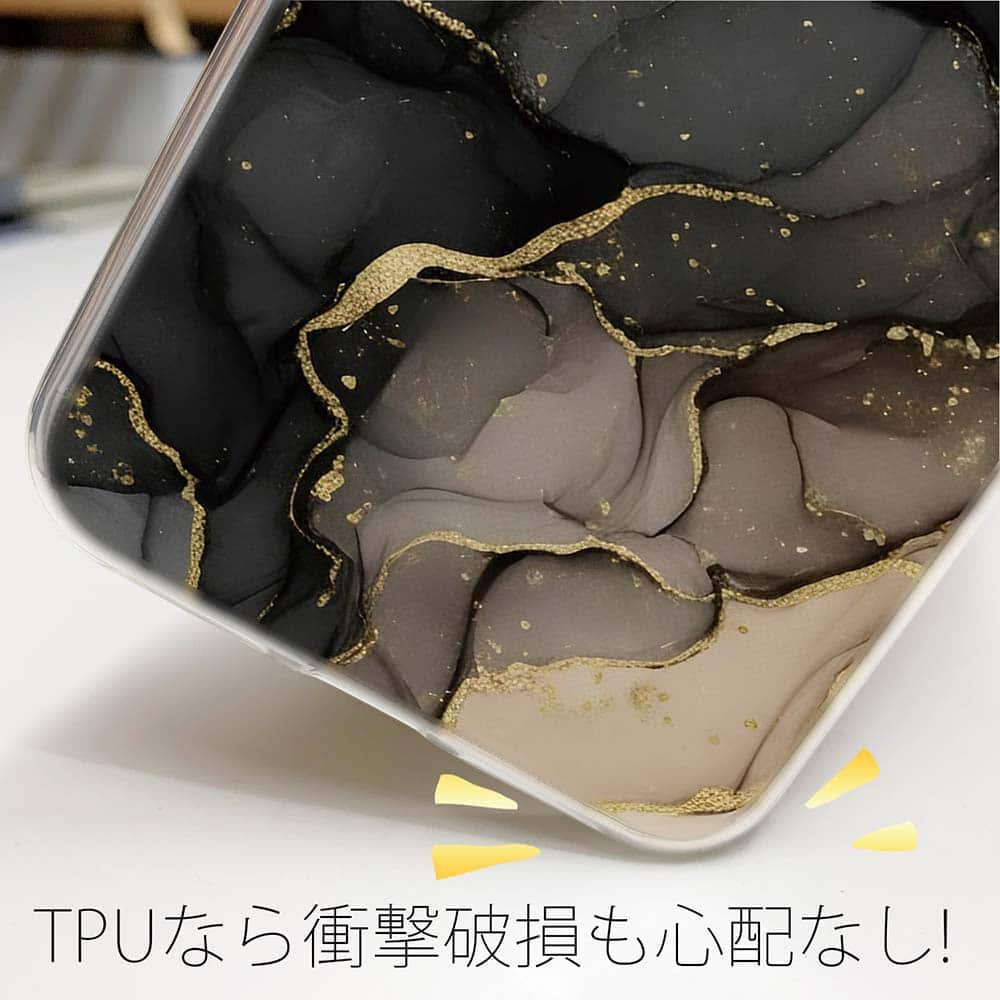 【TPU】くすみカラーマーブル調 ブラック&ゴールド