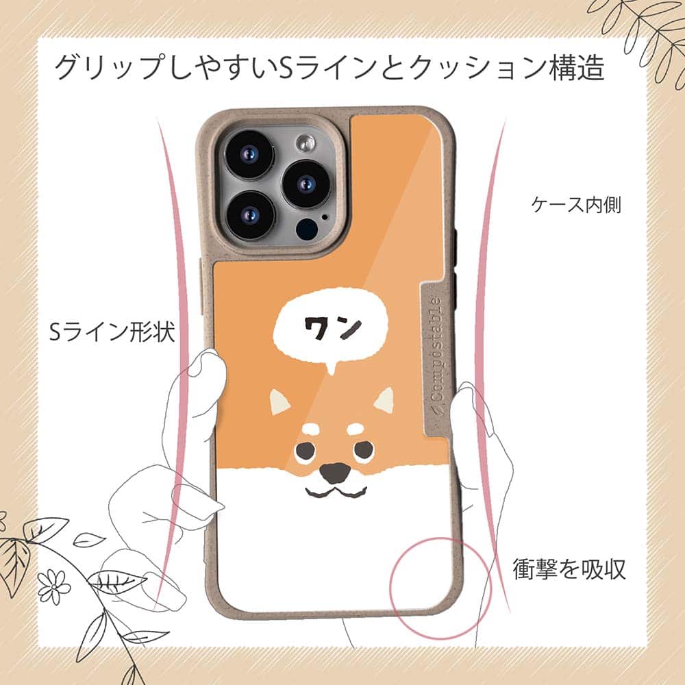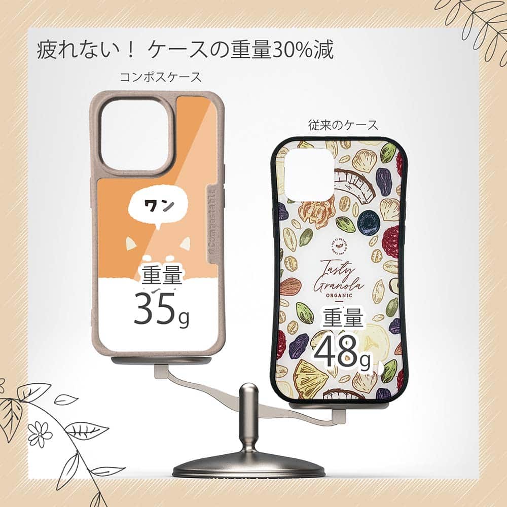 【コンポスケースの特徴】生分解性プラスチックと再生プラスチック製デザインシートでシーンに合わせて着せ替えグリップしやすいクッション構造本体重量35gと軽い(従来比-30%)衝撃に強いSライン形状究極に押しやすいボタン設計液晶画面、カメラ・レンズを保護生分解性プラスチックだけど割れない 脱着も容易背面は指紋防止加工【本体サイズ】企画:株式会社アングラベース製造;中国素材:生分解性プラスチック(側面)/再生プラスチック(背面)