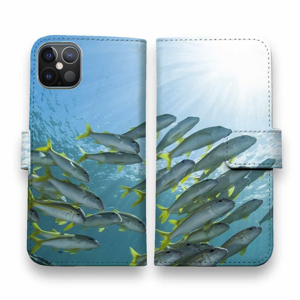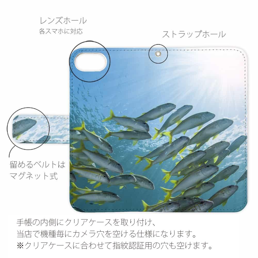 手帳型ケースは、高級人工革(外側)にUV印刷を施し、内側ではハードケースまたはTPUケースでスマートフォンをしっかりと保護します。