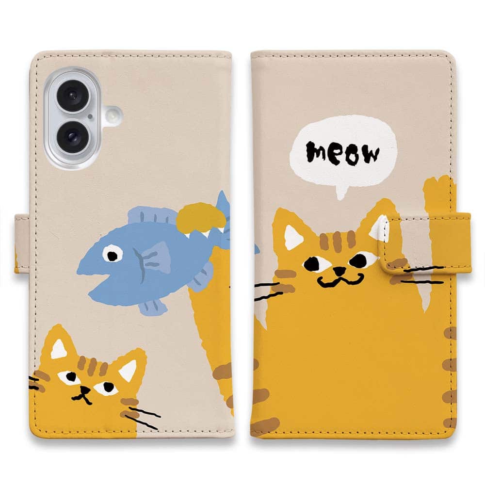 【手帳型】サカナもってワーイなネコ_茶トラ猫(wakat)