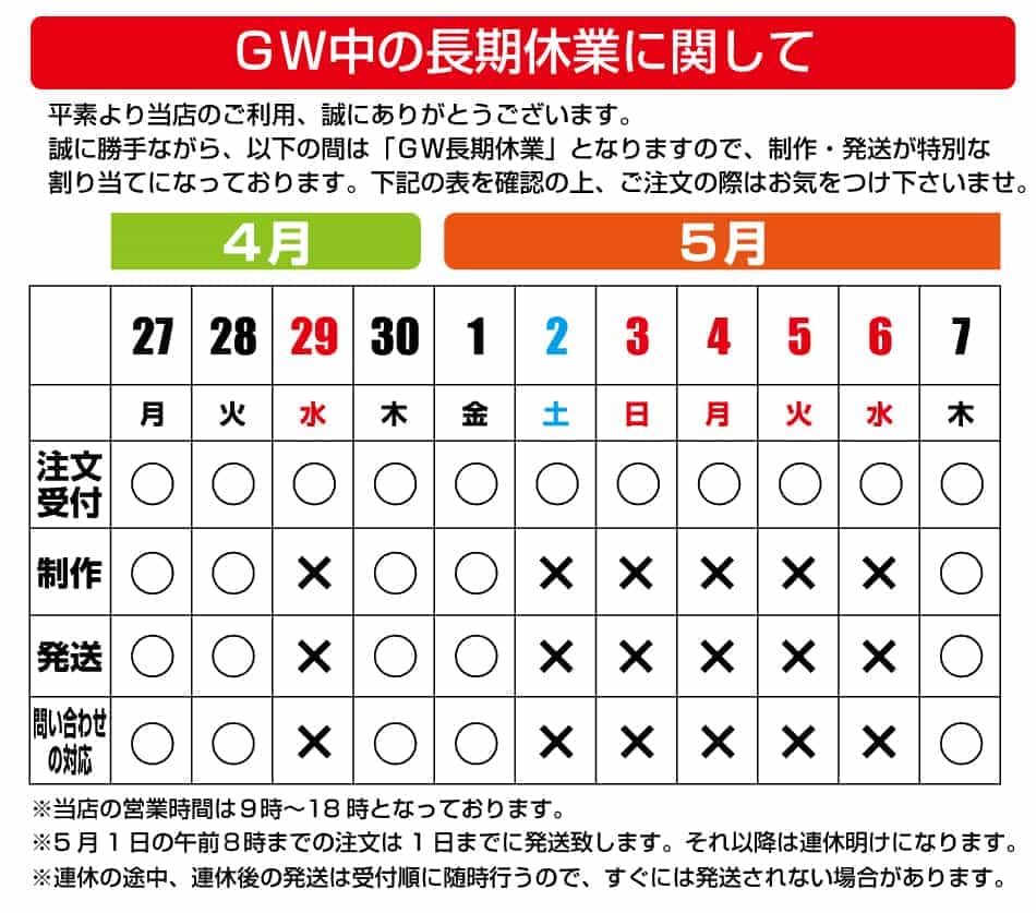 2020年GWの営業日のお知らせ