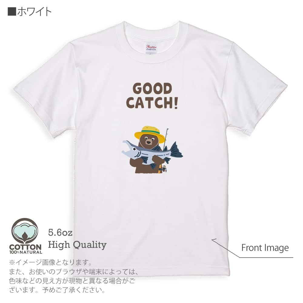 【Tシャツ】【釣りざんまい】サケを釣るクマさん 5.6oz Cotton:100%