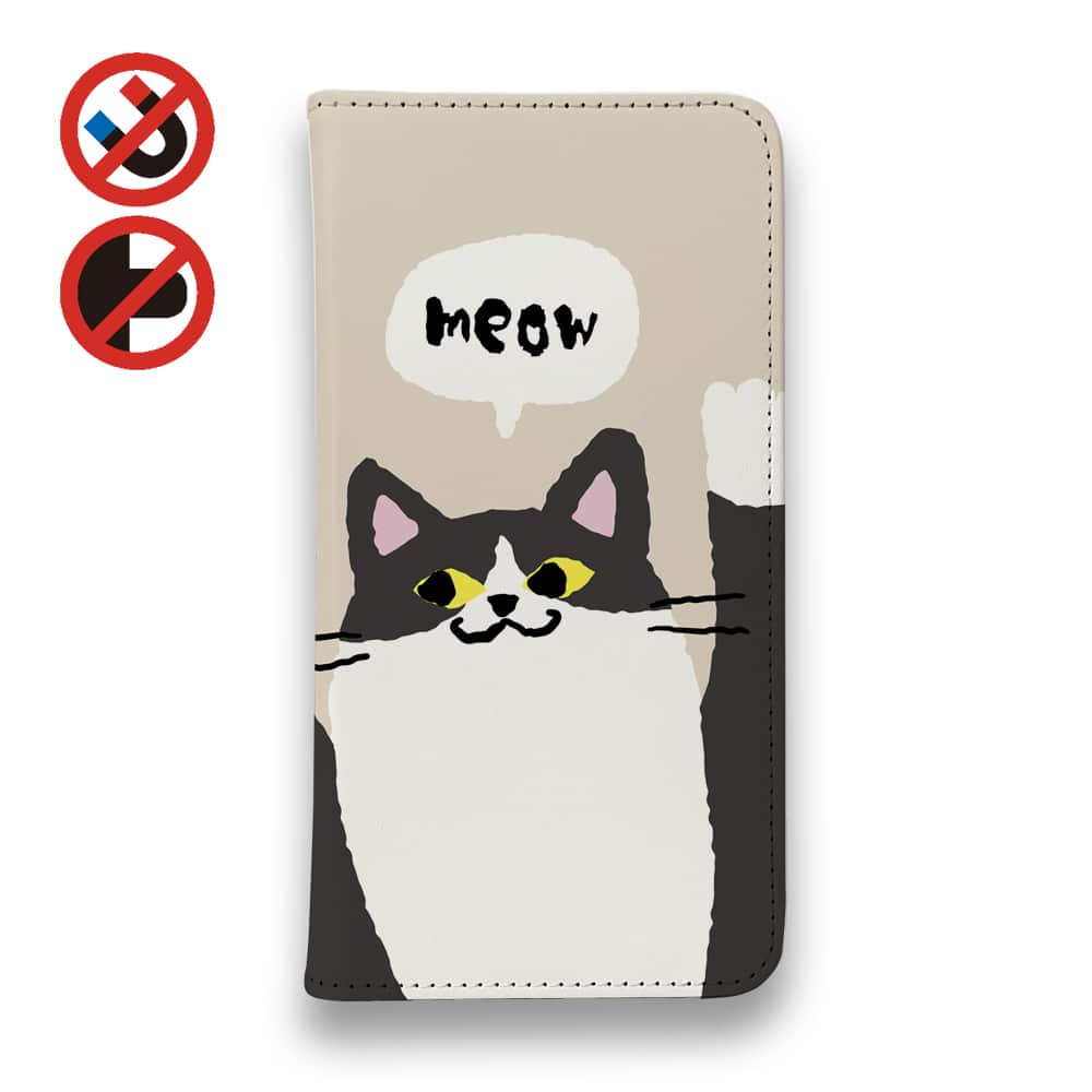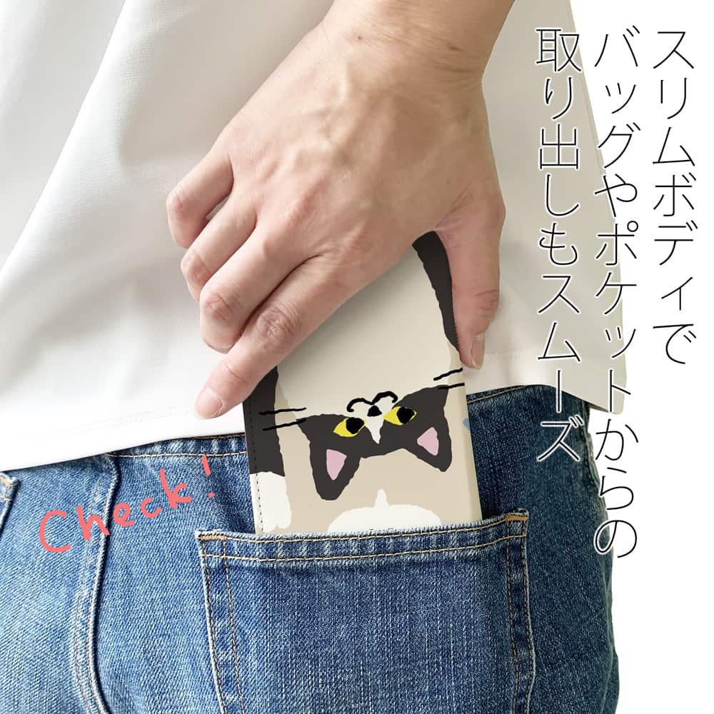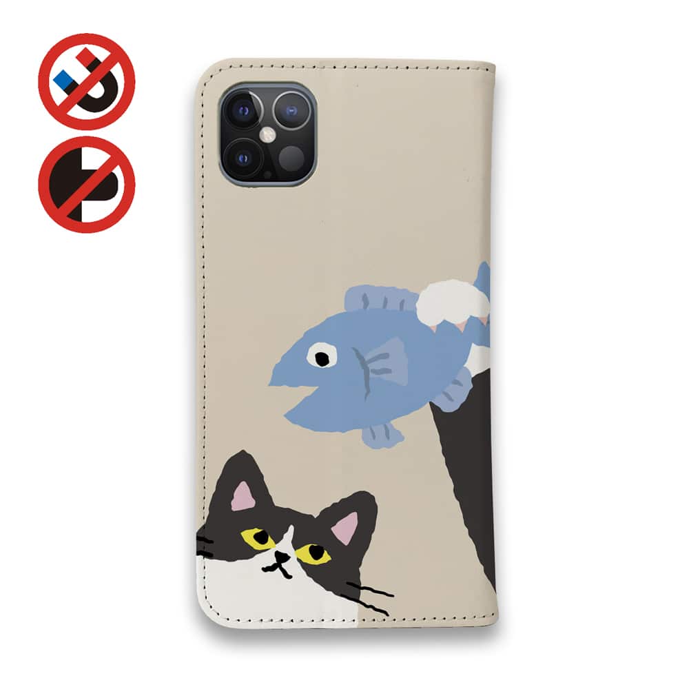 【手帳型ベルトなし】【Stick Case】サカナもってワーイなネコ_ハチワレ猫(wakat)