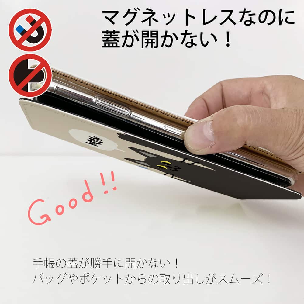 【手帳型ベルトなし】【Stick Case】サカナもってワーイなネコ_黒猫(wakat)