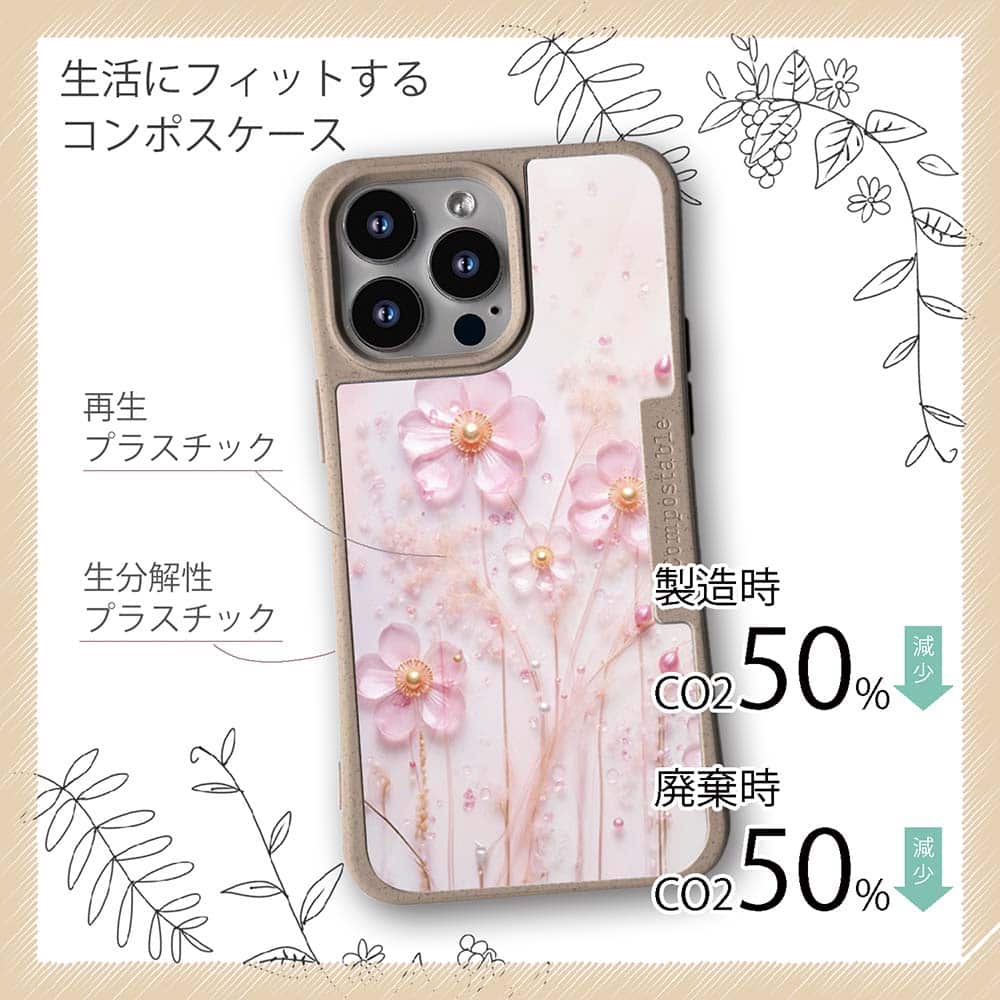 コンポスケースは、環境負荷低減を目的に開発されたスマホケースです。従来のスマホケースと比べCO2排出量を50%削減。しかも、循環型社会に対応した素材を使ったケースです。【コンポスケースの特徴】生分解性プラスチックと再生プラスチック製デザインシートでシーンに合わせて着せ替えグリップしやすいクッション構造本体重量35gと軽い(従来比-30%)衝撃に強いSライン形状究極に押しやすいボタン設計液晶画面、カメラ・レンズを保護生分解性プラスチックだけど割れない 脱着も容易背面は指紋防止加工【本体サイズ】企画:株式会社アングラベース製造;中国素材:生分解性プラスチック(側面)/再生プラスチック(背面)