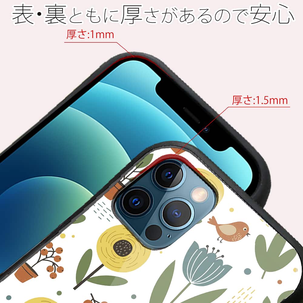 側面はゴムのように柔らかいTPU素材で、背面は衝撃に強いアクリル樹脂で、スマホ本体を守ります。