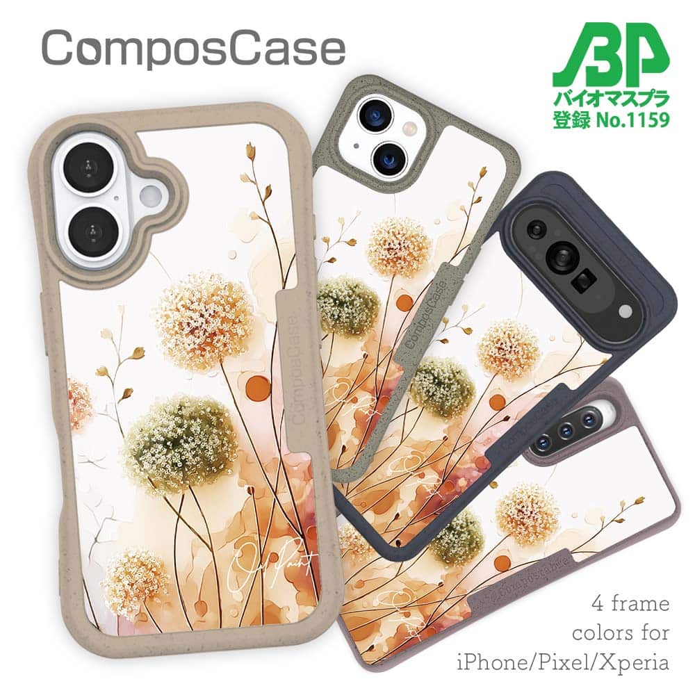 コンポスケースは、環境負荷低減を目的に開発されたスマホケースです。従来のスマホケースと比べCO2排出量を50%削減。しかも、循環型社会に対応した素材を使ったケースです。【コンポスケースの特徴】生分解性プラスチックと再生プラスチック製デザインシートでシーンに合わせて着せ替えグリップしやすいクッション構造本体重量35gと軽い(従来比-30%)衝撃に強いSライン形状究極に押しやすいボタン設計液晶画面、カメラ・レンズを保護生分解性プラスチックだけど割れない 脱着も容易背面は指紋防止加工【本体サイズ】企画:株式会社アングラベース製造;中国素材:生分解性プラスチック(側面)/再生プラスチック(背面)