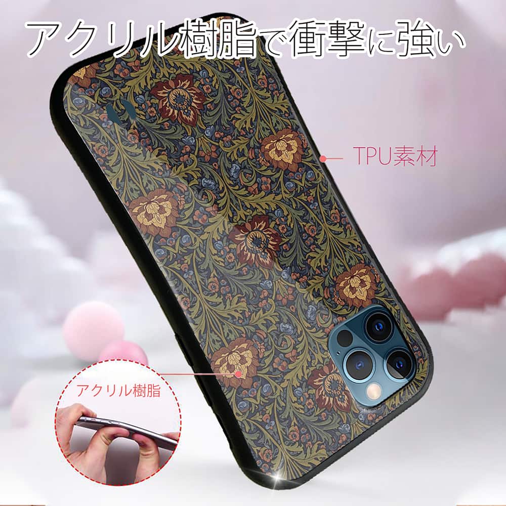 側面はゴムのように柔らかいTPU素材で、背面は衝撃に強いアクリル樹脂で、スマホ本体を守ります。