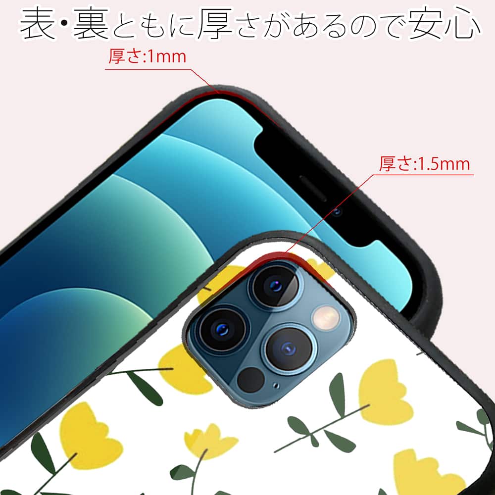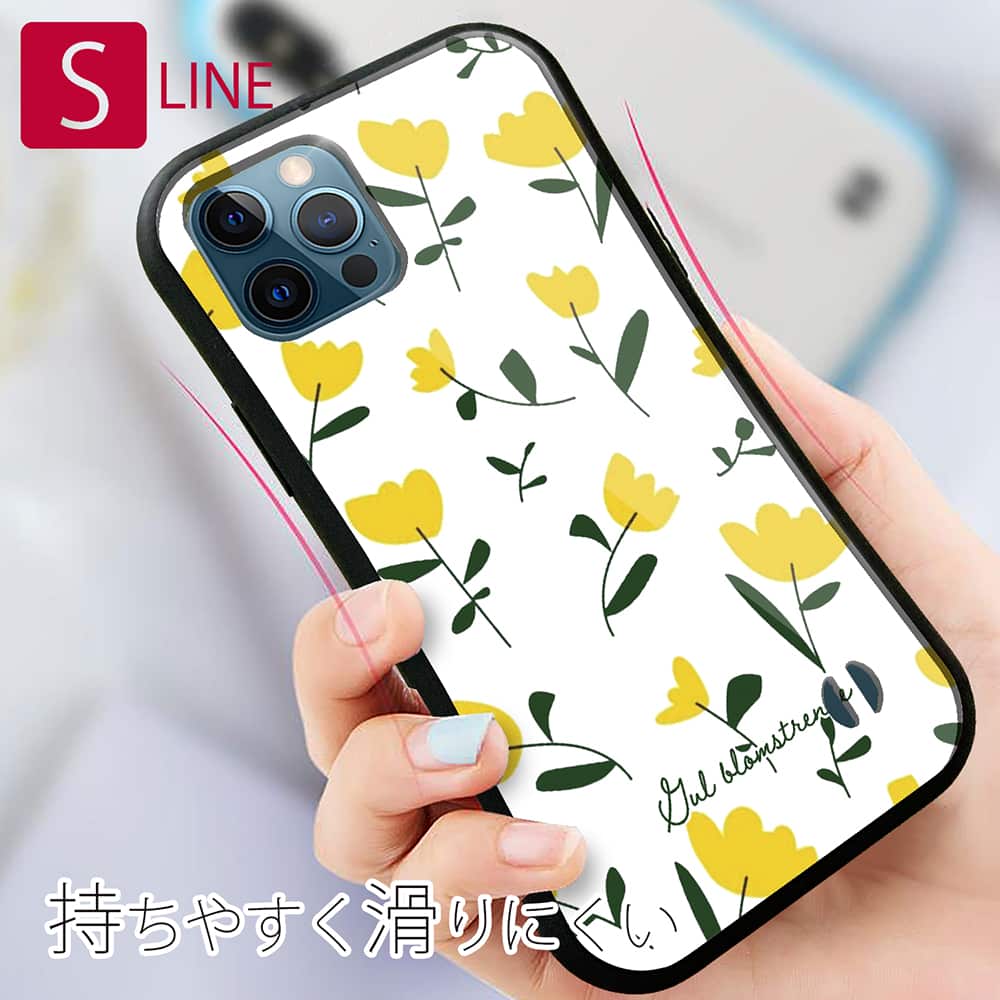 北欧デザインの黄色い花。透明ケースを活かしスマホ本体の色が透けて見えるデザイン。