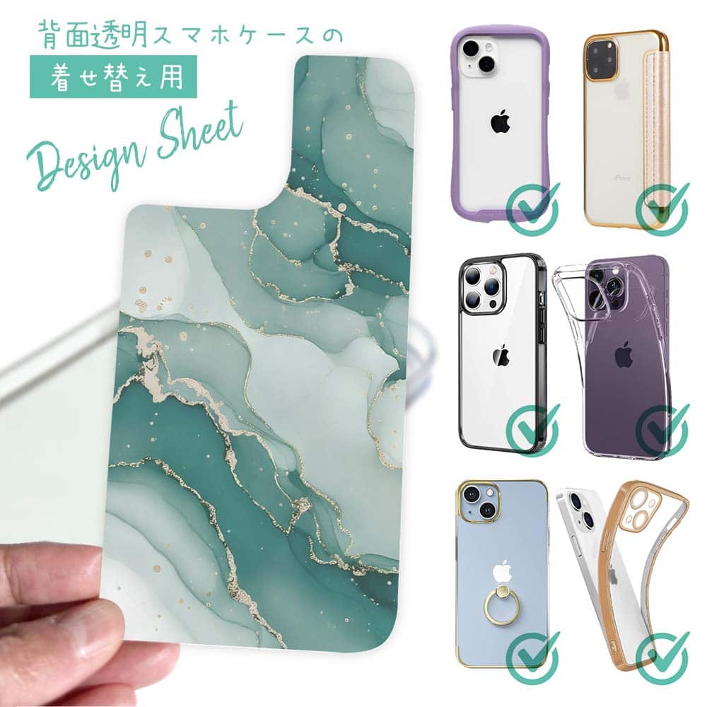 【デザインシート】くすみカラーマーブル調 グリーン&ゴールド