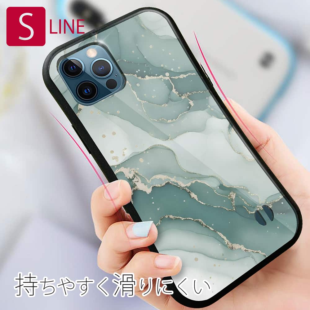 【S-LINE】くすみカラーマーブル調 グリーン&ゴールド