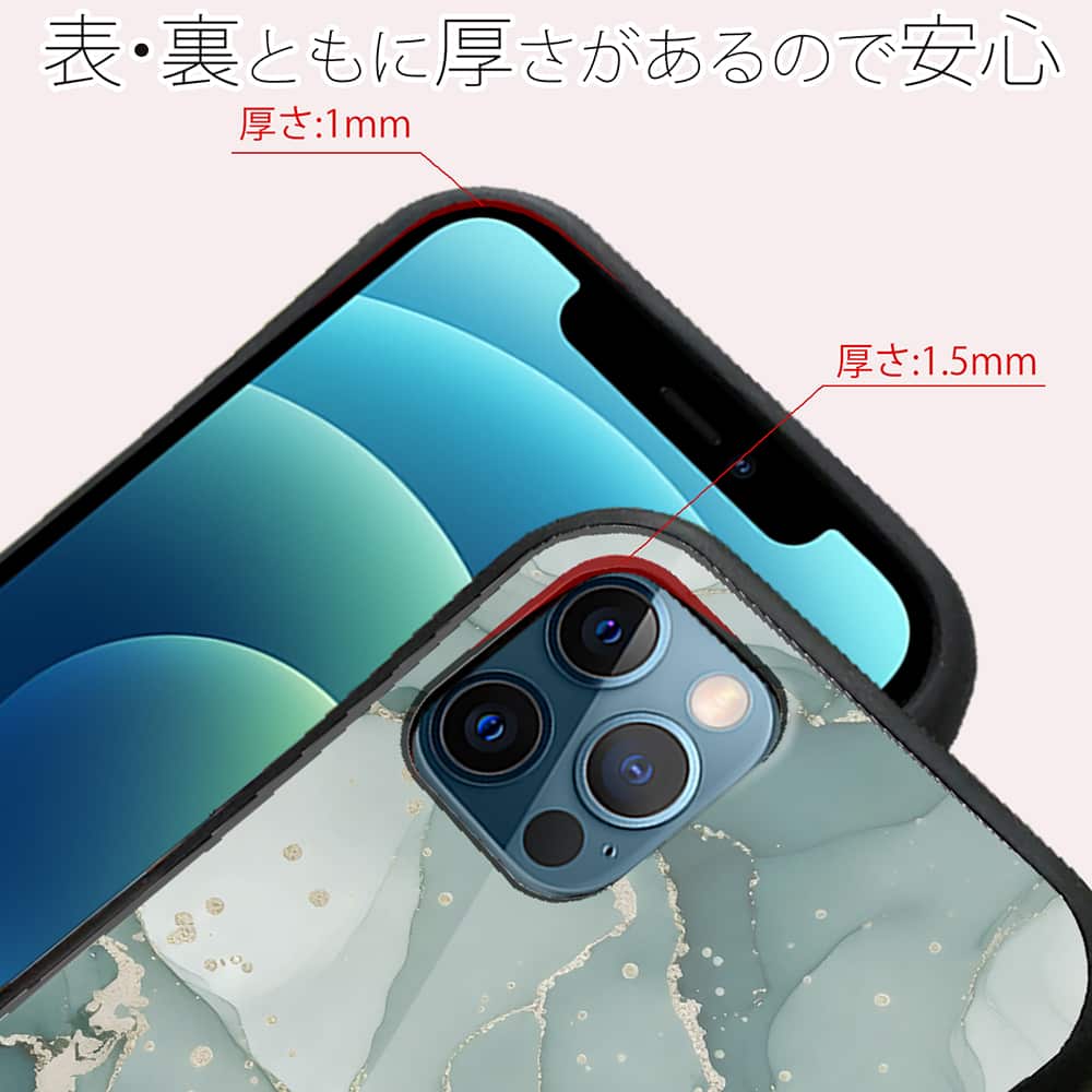 側面はゴムのように柔らかいTPU素材で、背面は衝撃に強いアクリル樹脂で、スマホ本体を守ります。