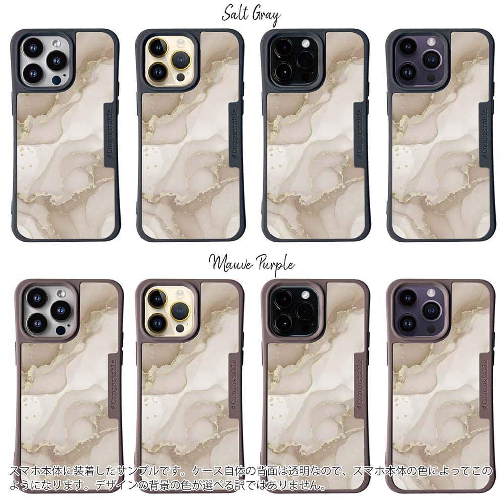 【Compos-Case】くすみカラーマーブル調 ベージュ&ゴールド