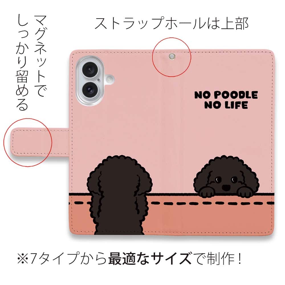 【手帳型】何か気になるプードル_ブラック(wakat)