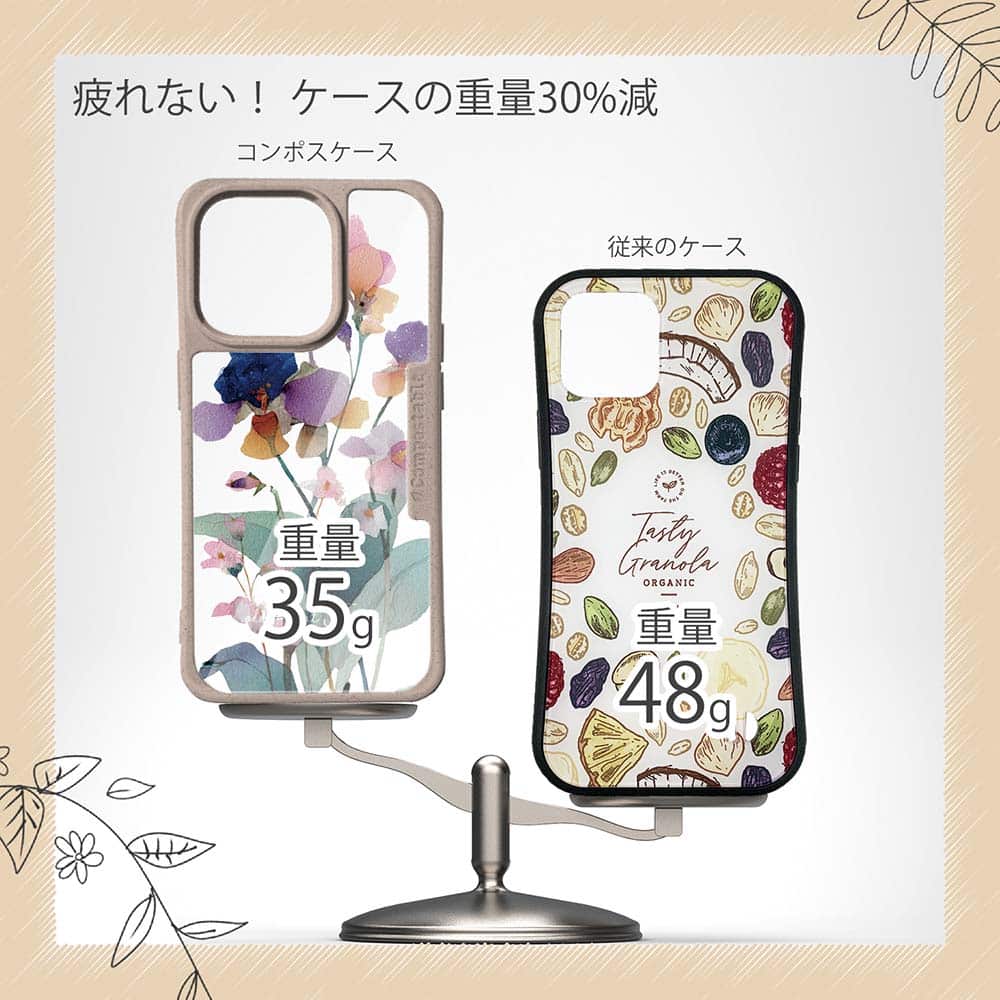 コンポスケースは、環境負荷低減を目的に開発されたスマホケースです。従来のスマホケースと比べCO2排出量を50%削減。しかも、循環型社会に対応した素材を使ったケースです。【コンポスケースの特徴】生分解性プラスチックと再生プラスチック製デザインシートでシーンに合わせて着せ替えグリップしやすいクッション構造本体重量35gと軽い(従来比-30%)