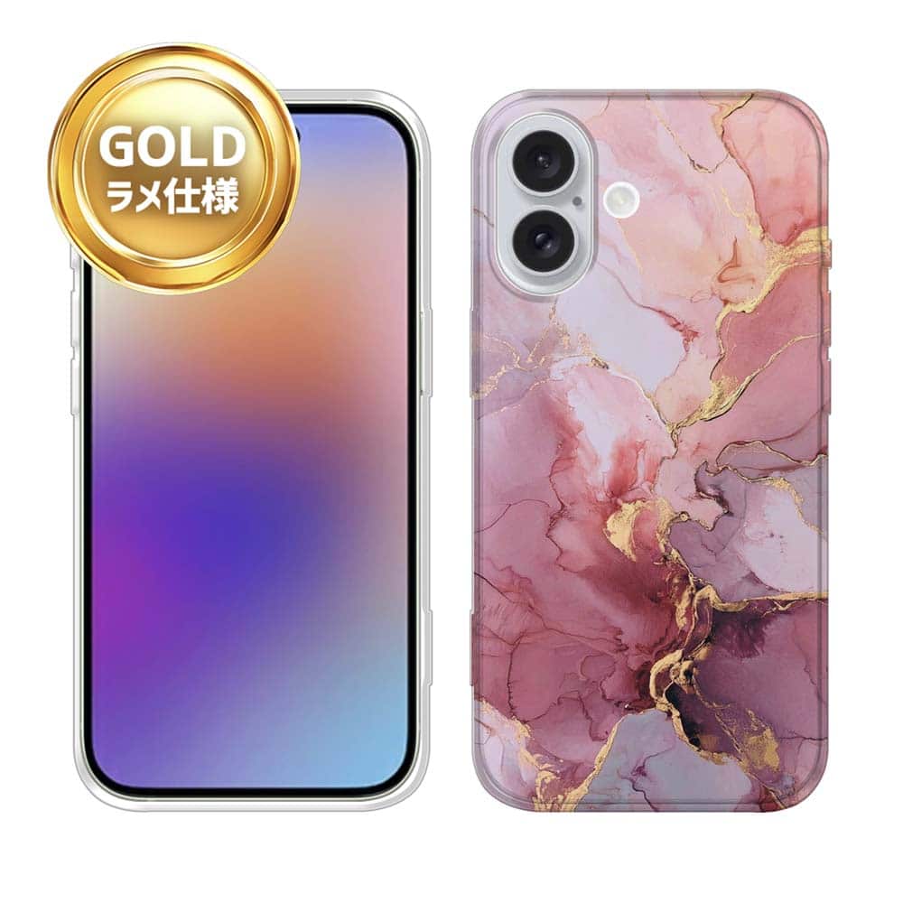 【TPU】マーブル調【ゴールドラメ】 ピンク&ゴールド