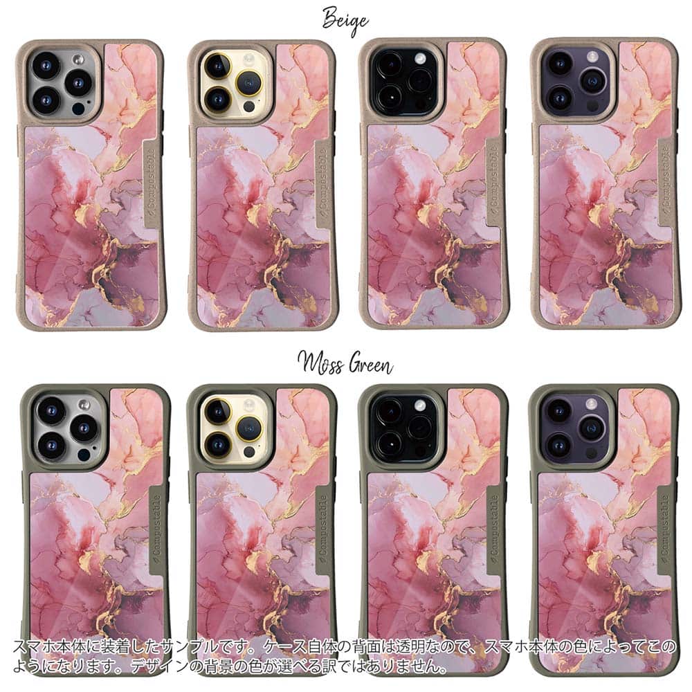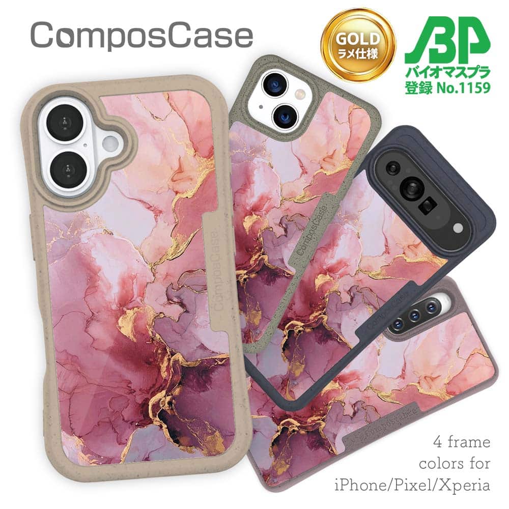 【Compos-Case】マーブル調【ゴールドラメ】 ピンク&ゴールド