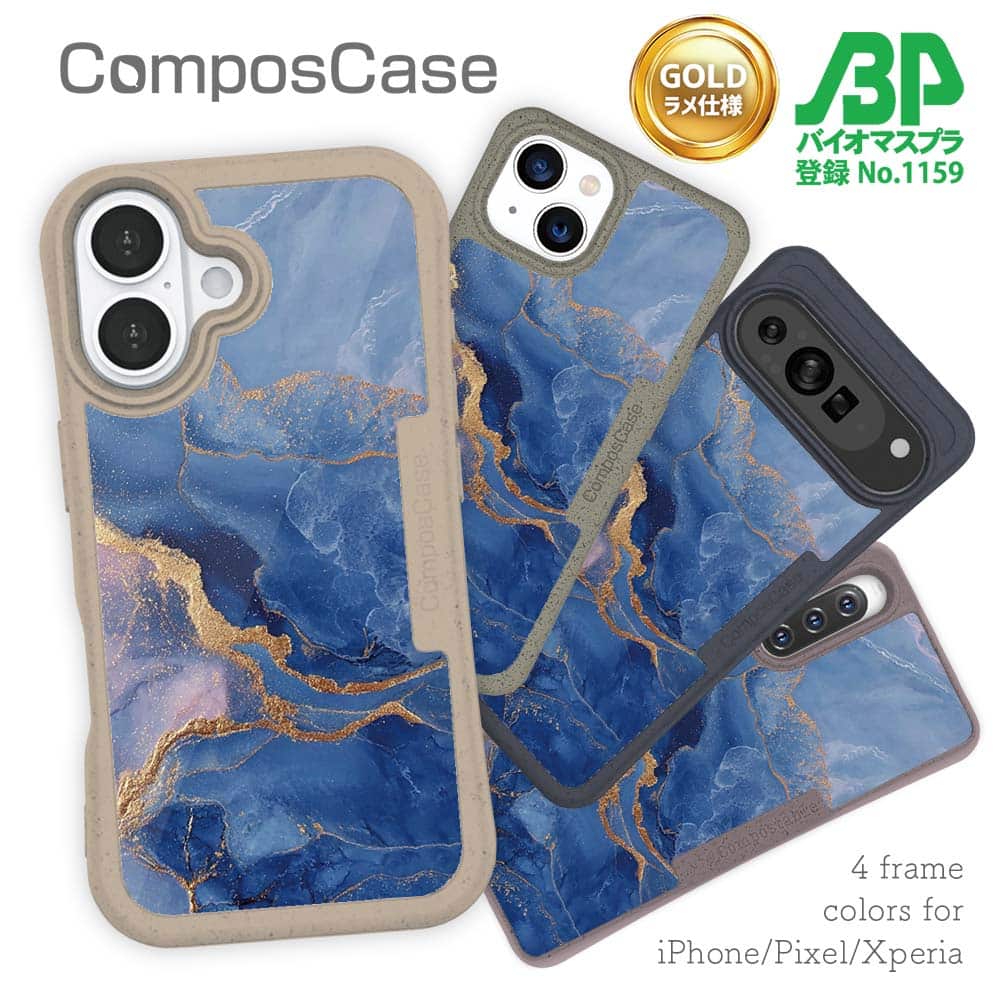 【Compos-Case】マーブル調【ゴールドラメ】 ブルー&ゴールド