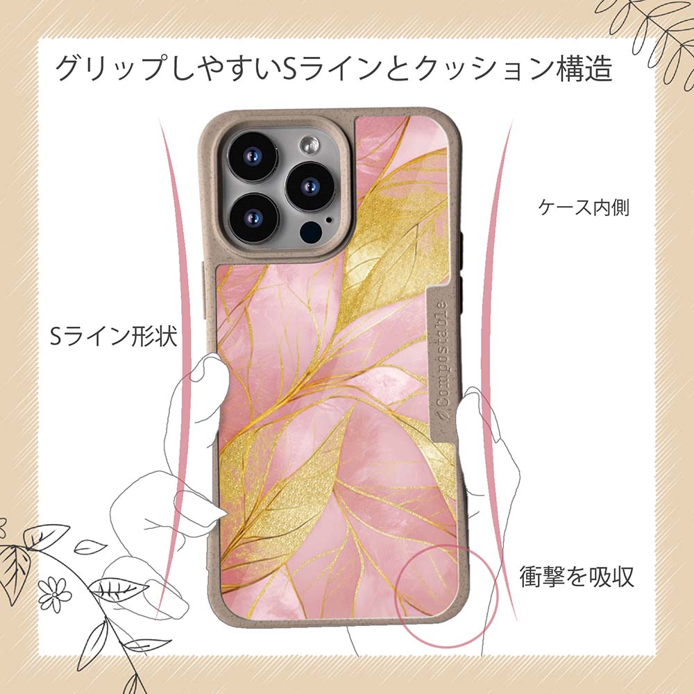コンポスケースは、環境負荷低減を目的に開発されたスマホケースです。従来のスマホケースと比べCO2排出量を50%削減。しかも、循環型社会に対応した素材を使ったケースです。【コンポスケースの特徴】生分解性プラスチックと再生プラスチック製デザインシートでシーンに合わせて着せ替えグリップしやすいクッション構造本体重量35gと軽い(従来比-30%)衝撃に強いSライン形状