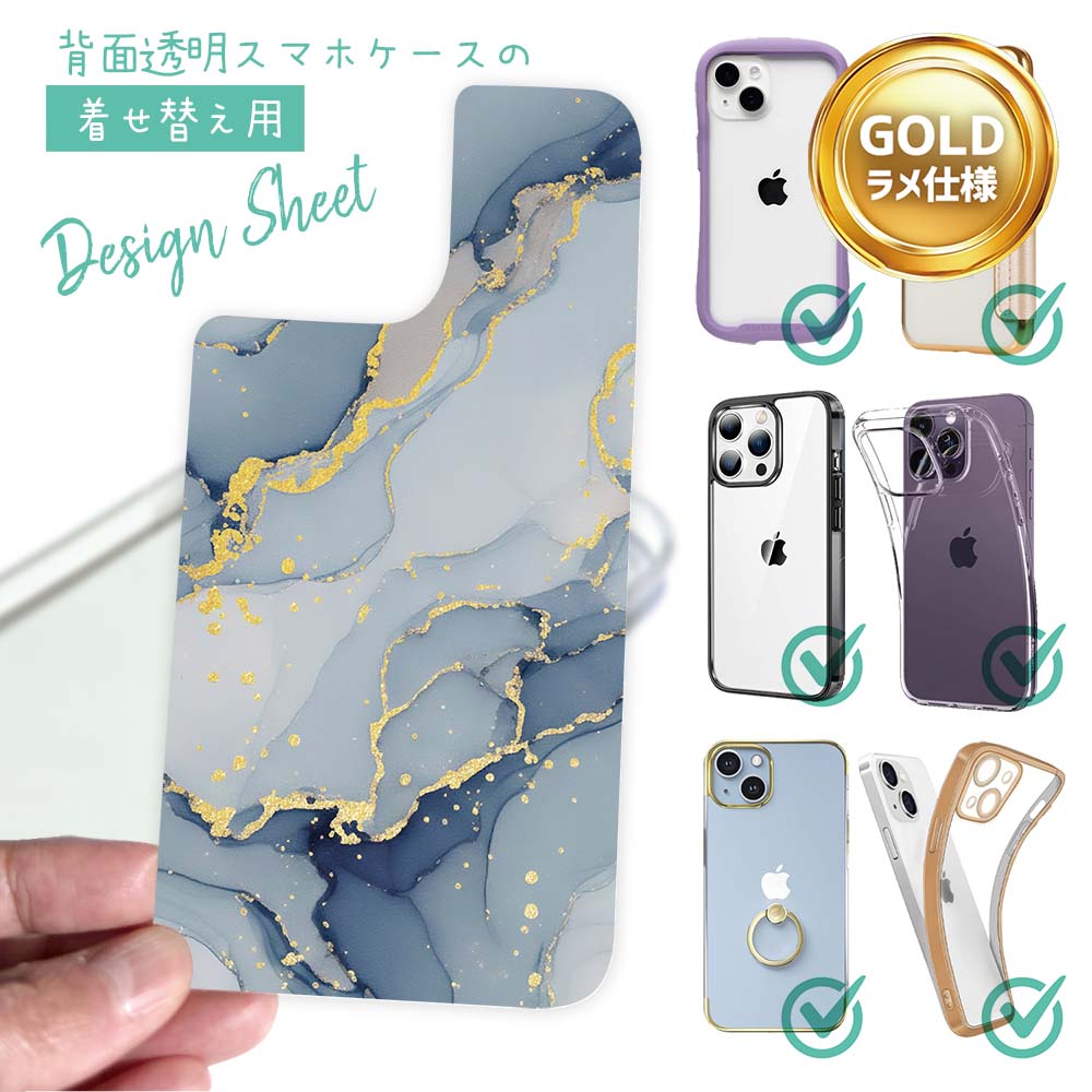 【デザインシート】くすみカラーマーブル【ラメ】 ブルー&ゴールド