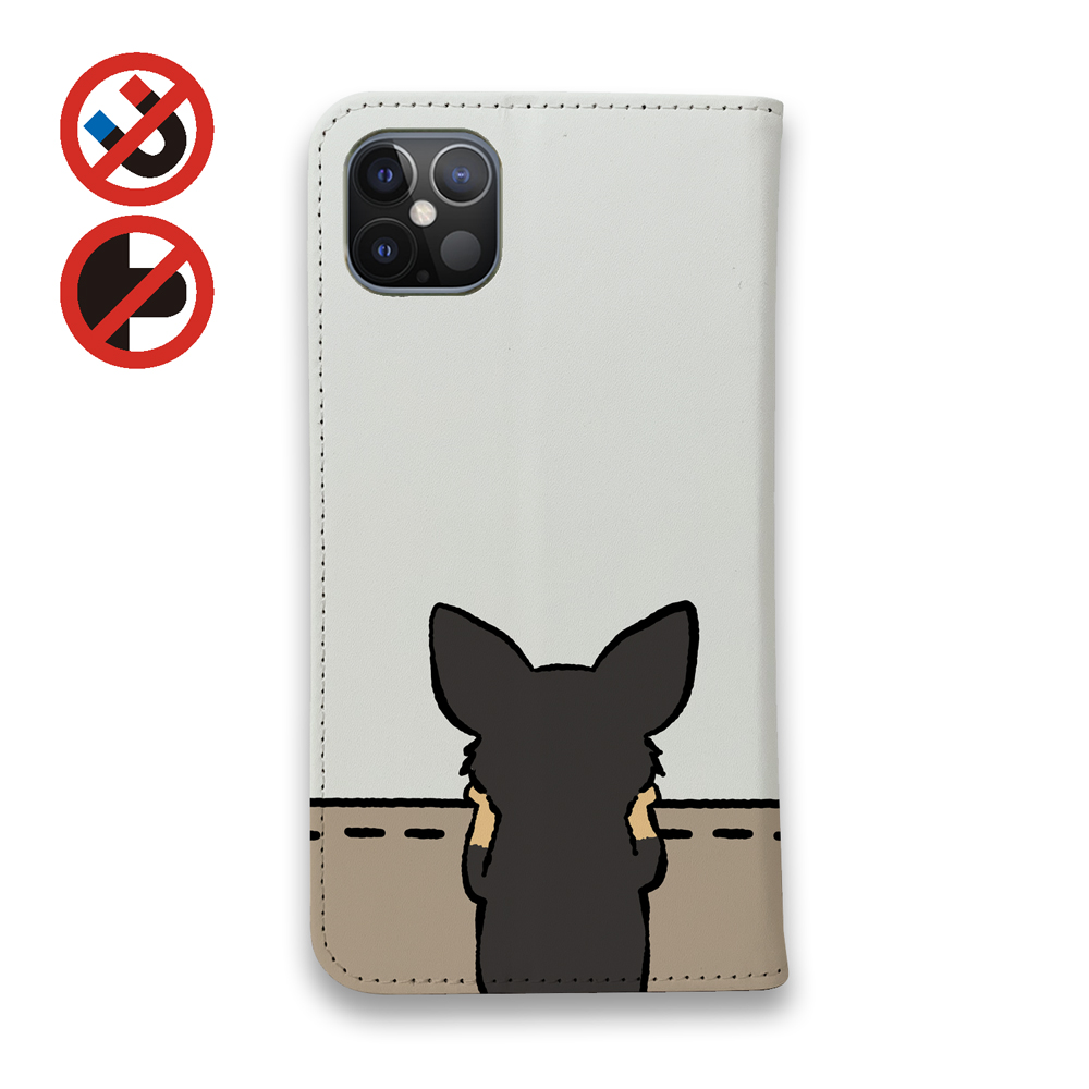 【手帳型ベルトなし】【Stick Case】何か気になるチワワ_ブラックタン(wakat)