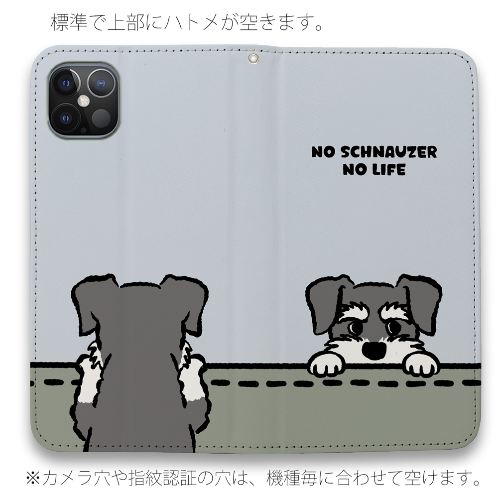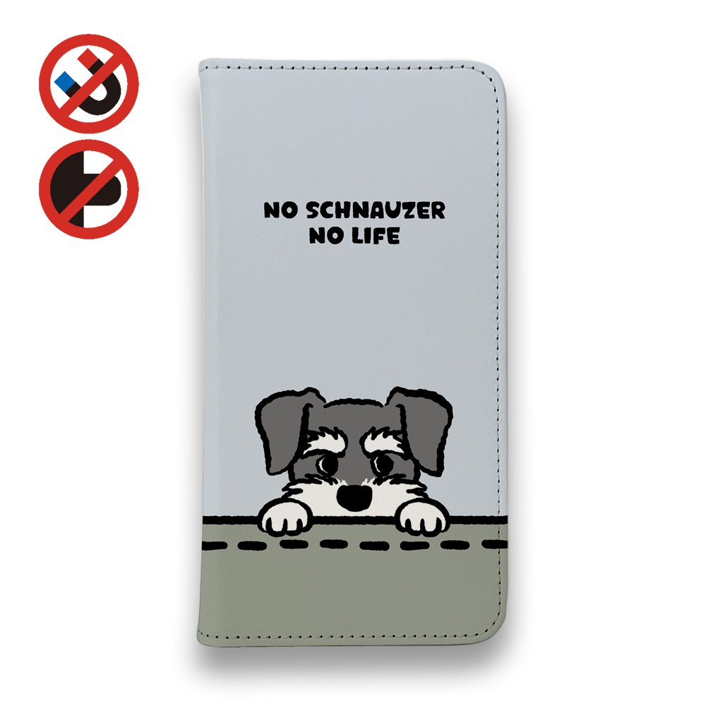 【手帳型ベルトなし】【Stick Case】何か気になるミニチュアシュナウザー_ソルト&ペッパー(wakat)