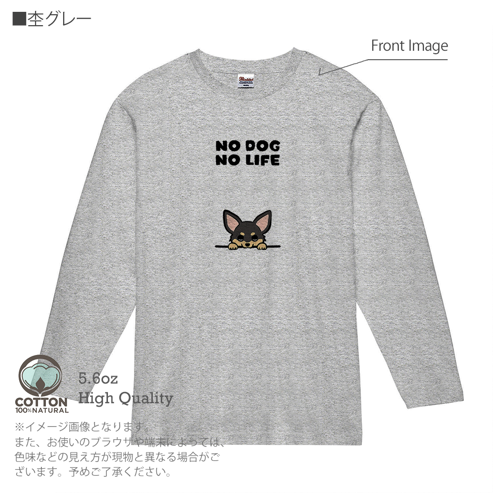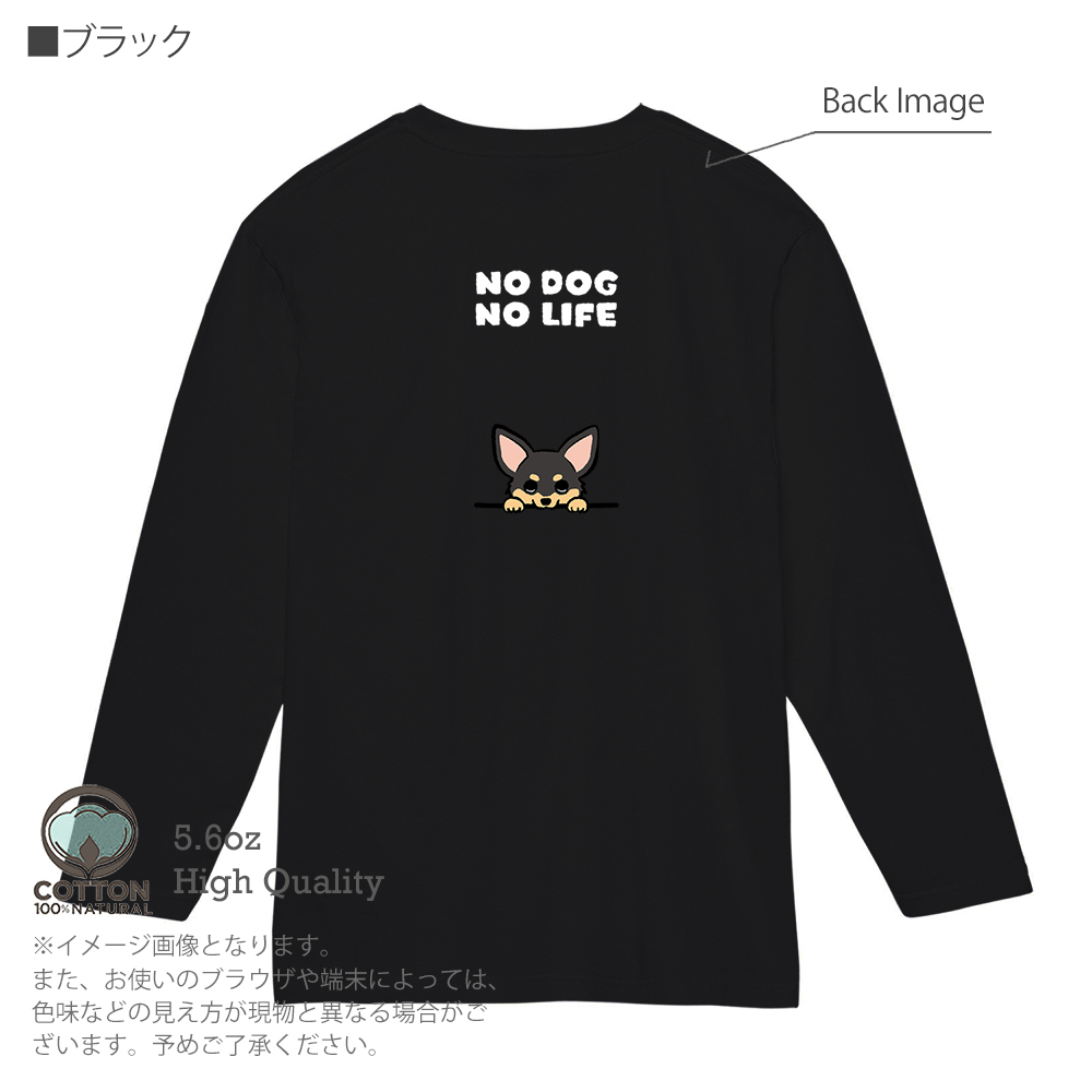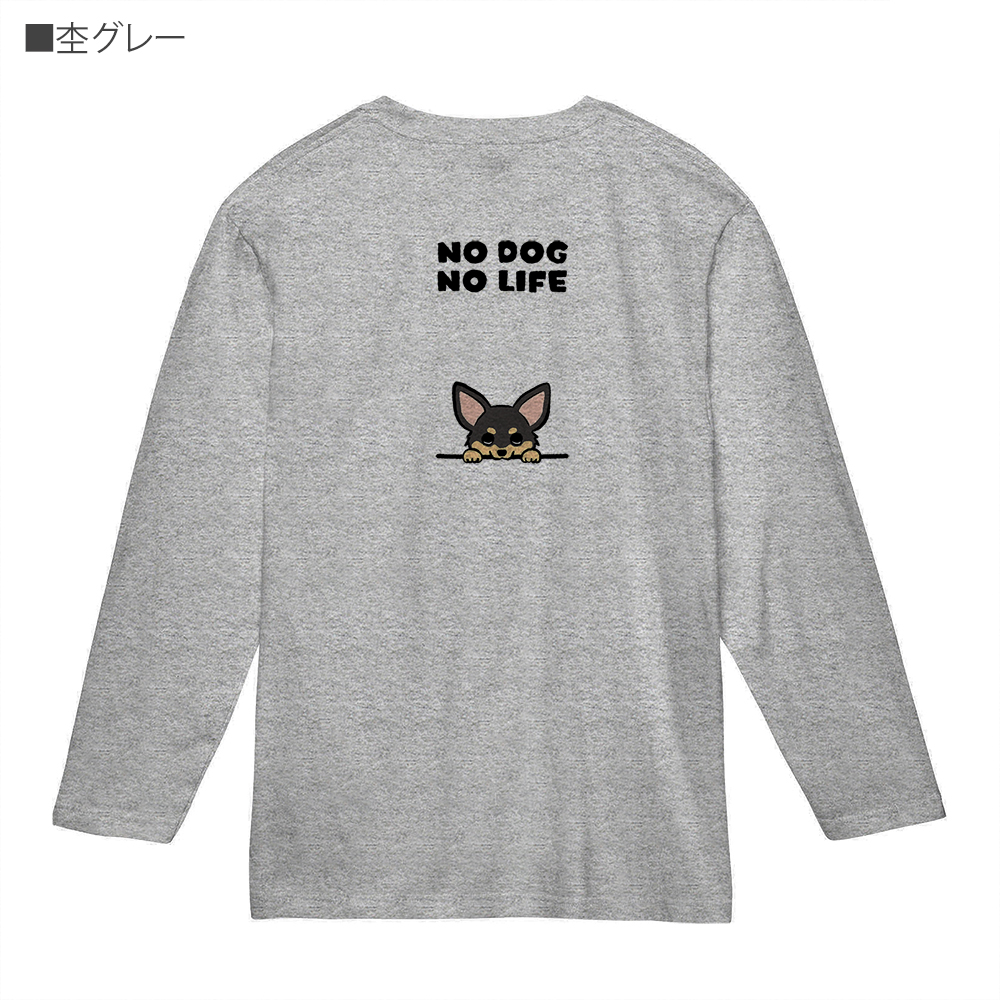 【長袖Tシャツ】何か気になるチワワ_ブラックタン(wakat) 5.6oz Cotton:100%