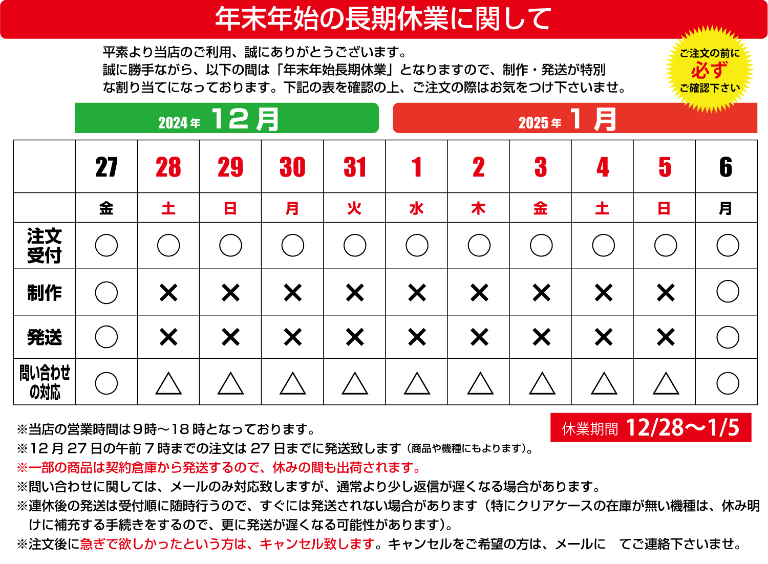 年末年始はは12月28日〜1月5日まで休業とさせていただきます。お問い合わせ頂いても、ご返事が遅れますことをご了承くださいませ。
