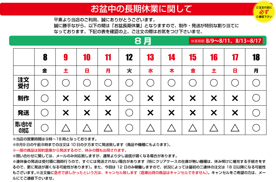 ご注文頂いた商品のキャンセルは、翌日の午前10時までは承っております。機種の間違いやデザインの変更なども同時刻まで承ります。