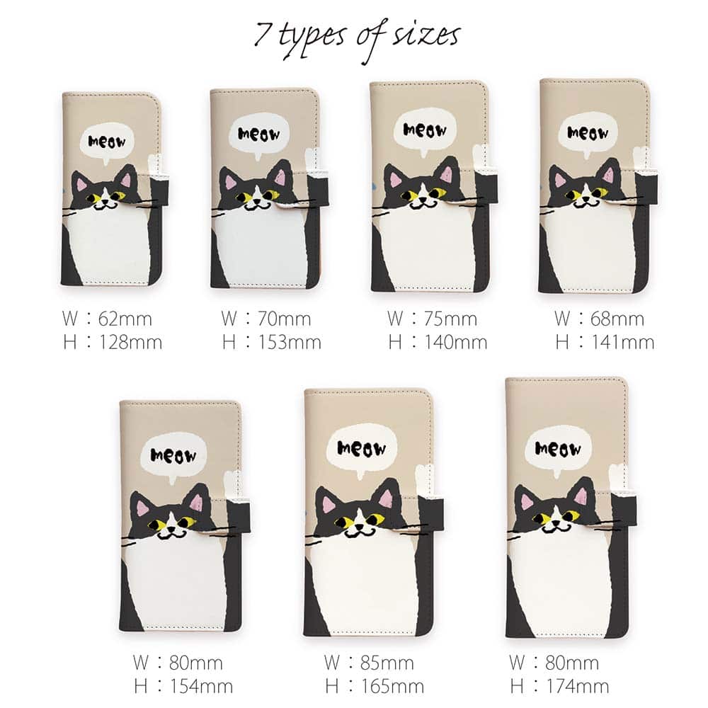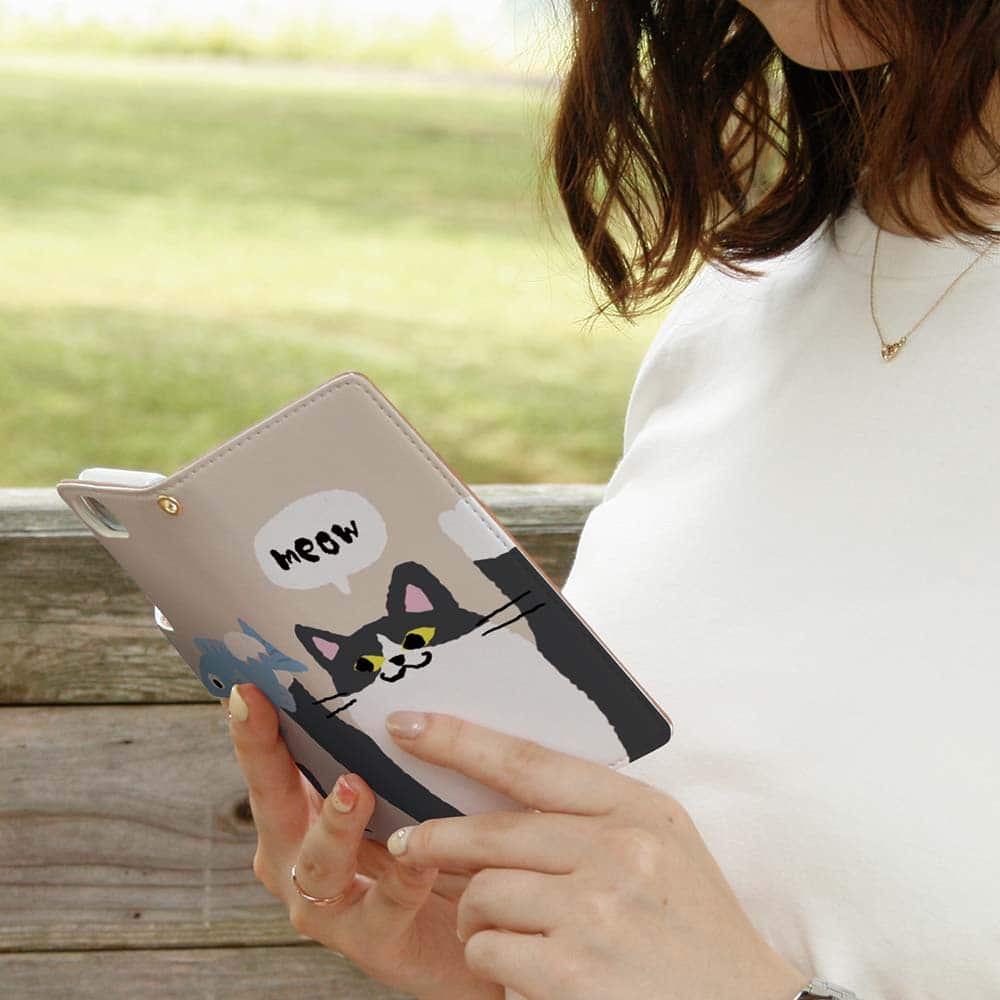【手帳型ベルトなし】【Stick Case】サカナもってワーイなネコ_白猫(wakat)