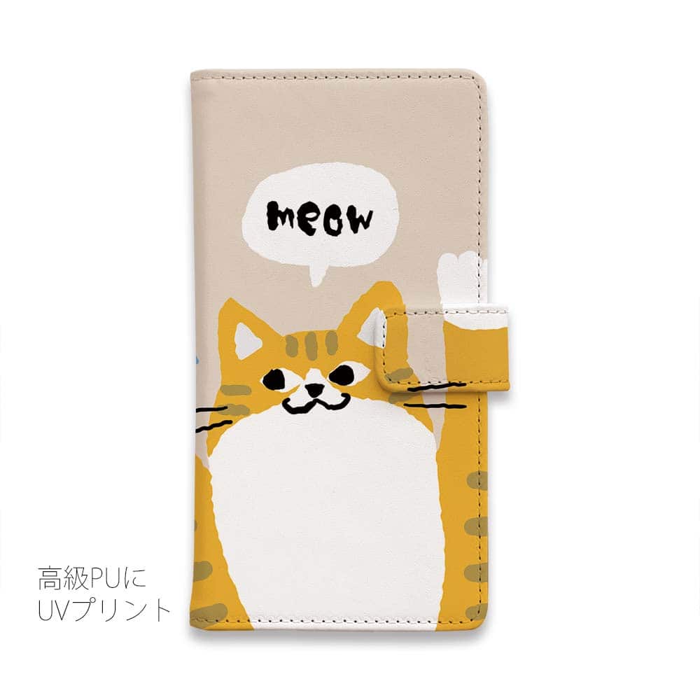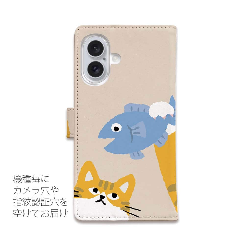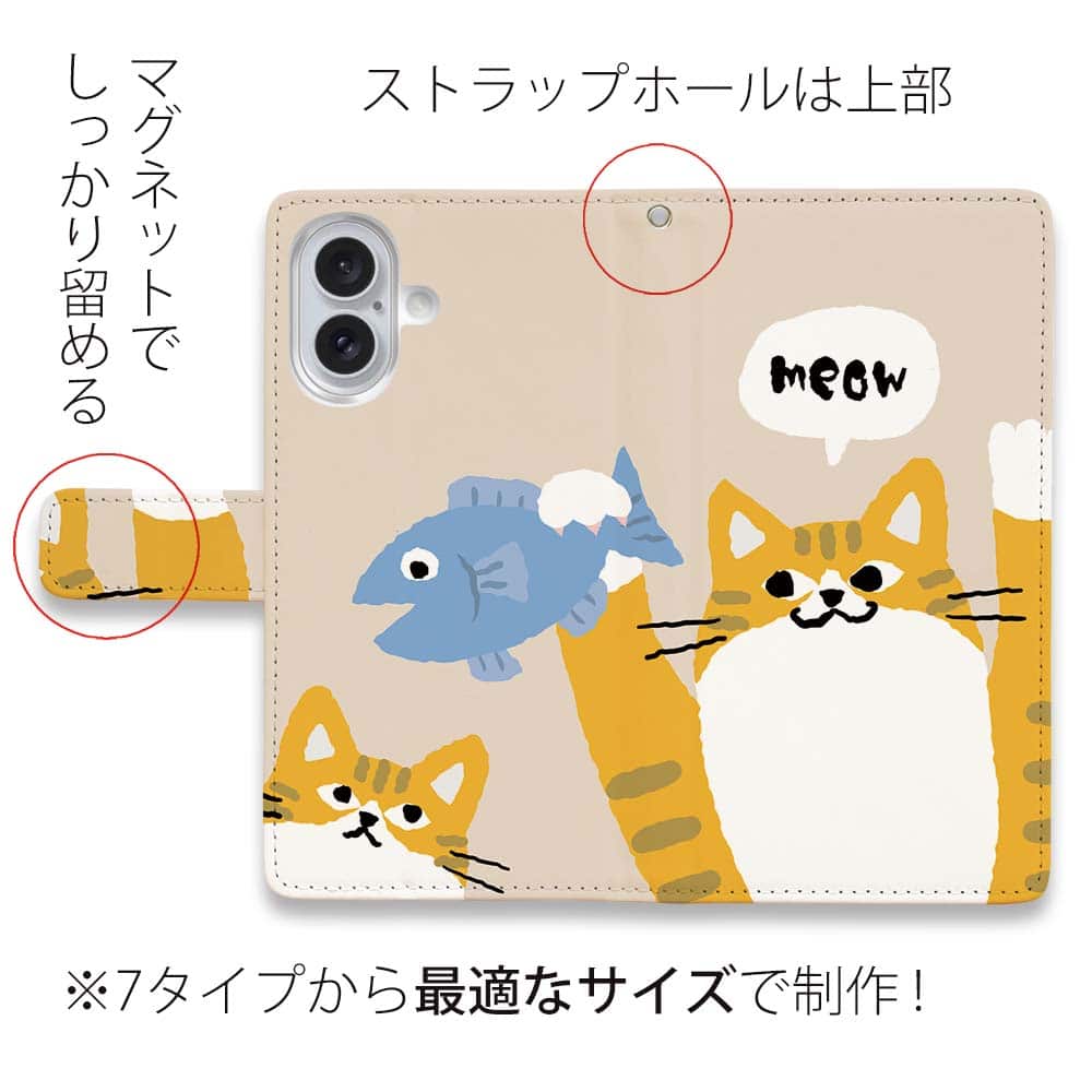 【手帳型】サカナもってワーイなネコ_茶白猫(wakat)