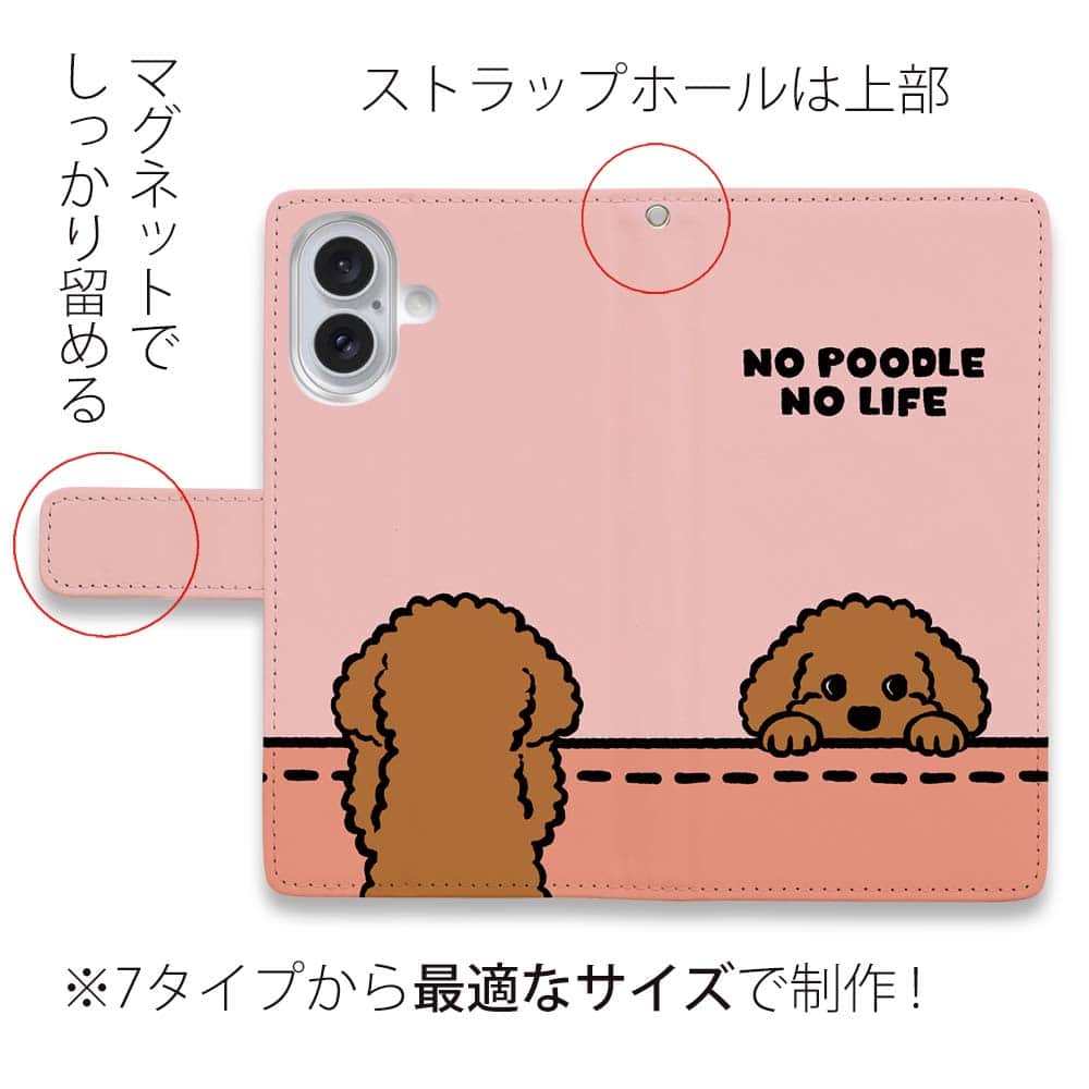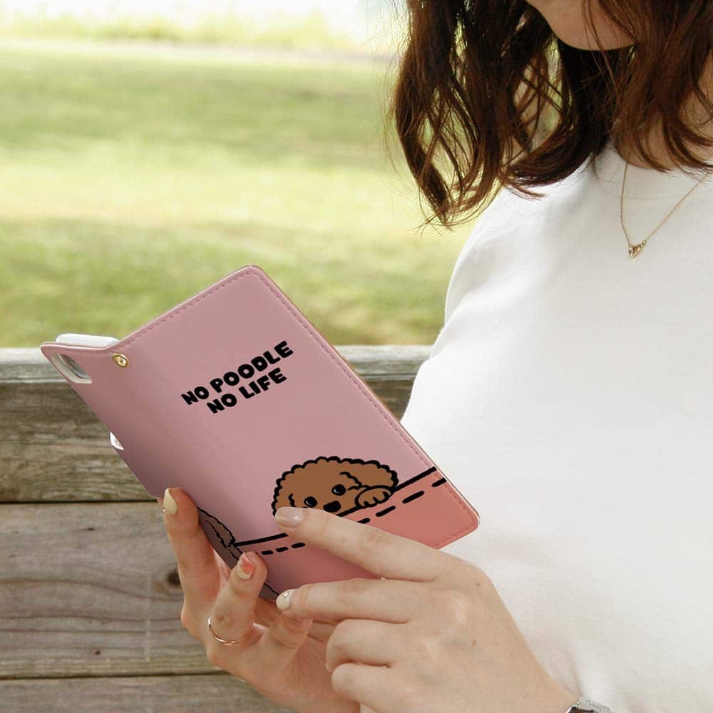 【手帳型】何か気になるプードル_ブラウン(wakat)