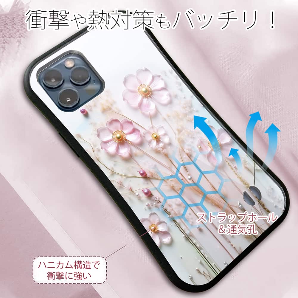 ケースの内側はハニカム構造!スマホ本体の熱を逃がすばかりか、衝撃にも強い構造となっています。