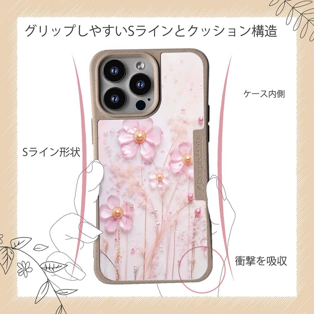コンポスケースは、環境負荷低減を目的に開発されたスマホケースです。従来のスマホケースと比べCO2排出量を50%削減。しかも、循環型社会に対応した素材を使ったケースです。【コンポスケースの特徴】生分解性プラスチックと再生プラスチック製デザインシートでシーンに合わせて着せ替えグリップしやすいクッション構造本体重量35gと軽い(従来比-30%)衝撃に強いSライン形状究極に押しやすいボタン設計液晶画面、カメラ・レンズを保護生分解性プラスチックだけど割れない 脱着も容易背面は指紋防止加工【本体サイズ】企画:株式会社アングラベース製造;中国素材:生分解性プラスチック(側面)/再生プラスチック(背面)