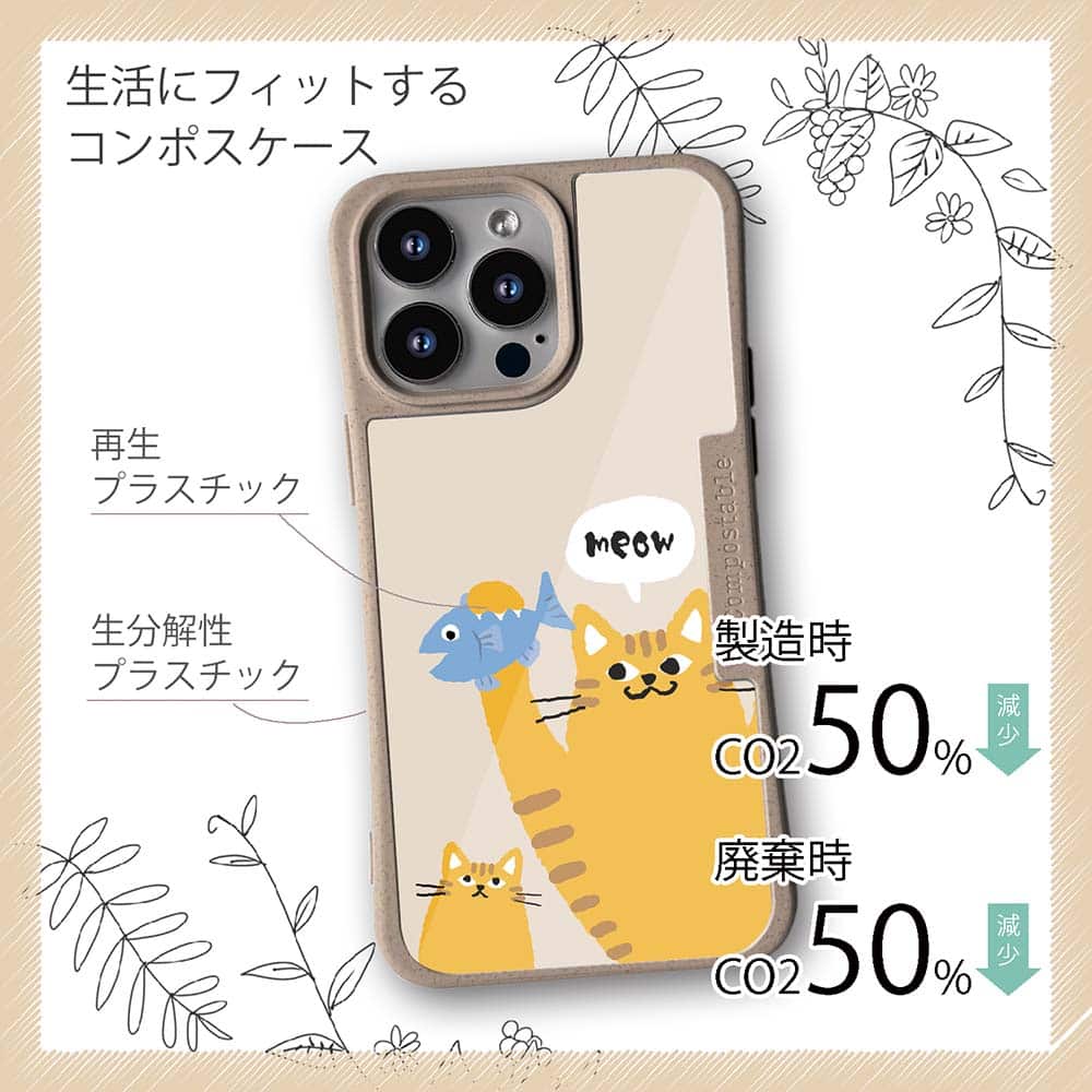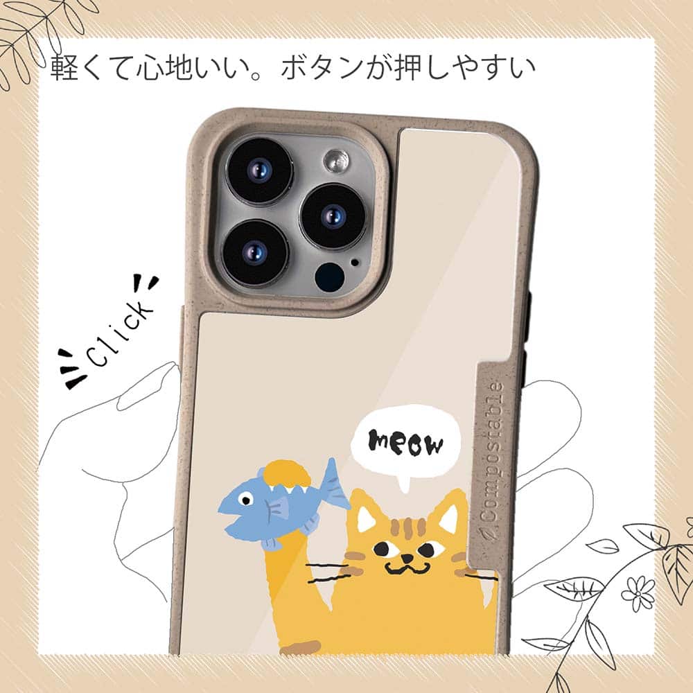 【コンポスケースの特徴】生分解性プラスチックと再生プラスチック製デザインシートでシーンに合わせて着せ替えグリップしやすいクッション構造本体重量35gと軽い(従来比-30%)衝撃に強いSライン形状究極に押しやすいボタン設計液晶画面、カメラ・レンズを保護生分解性プラスチックだけど割れない 脱着も容易背面は指紋防止加工【本体サイズ】企画:株式会社アングラベース製造;中国素材:生分解性プラスチック(側面)/再生プラスチック(背面)