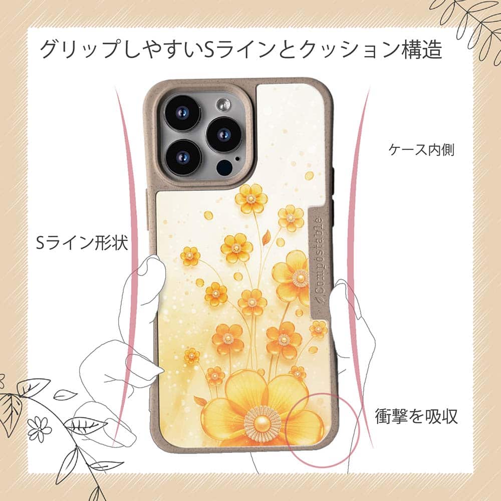 コンポスケースは、環境負荷低減を目的に開発されたスマホケースです。従来のスマホケースと比べCO2排出量を50%削減。しかも、循環型社会に対応した素材を使ったケースです。【コンポスケースの特徴】生分解性プラスチックと再生プラスチック製デザインシートでシーンに合わせて着せ替えグリップしやすいクッション構造本体重量35gと軽い(従来比-30%)衝撃に強いSライン形状究極に押しやすいボタン設計液晶画面、カメラ・レンズを保護生分解性プラスチックだけど割れない 脱着も容易背面は指紋防止加工【本体サイズ】企画:株式会社アングラベース製造;中国素材:生分解性プラスチック(側面)/再生プラスチック(背面)
