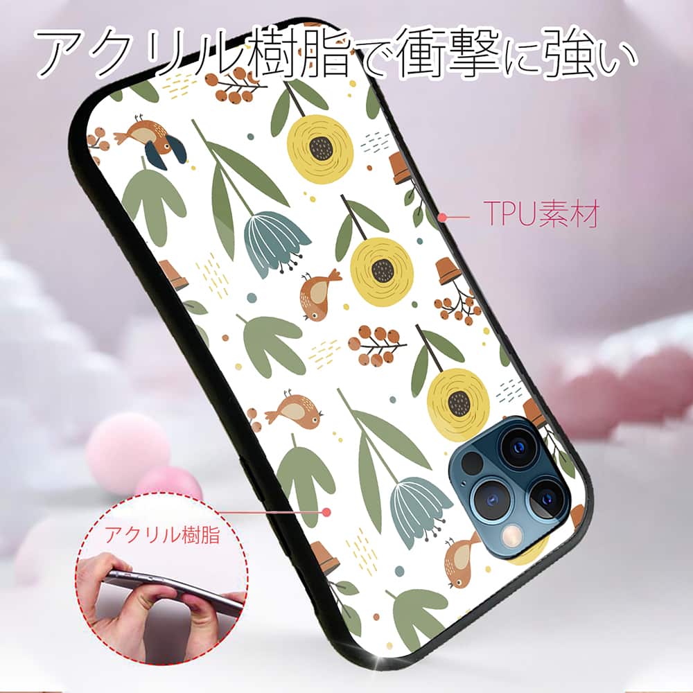 側面はゴムのように柔らかいTPU素材で、背面は衝撃に強いアクリル樹脂で、スマホ本体を守ります。