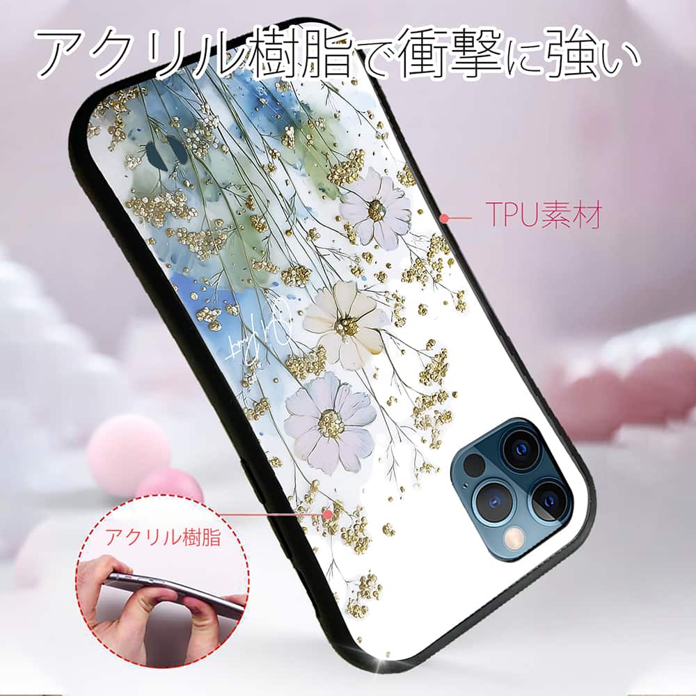 側面はゴムのように柔らかいTPU素材で、背面は衝撃に強いアクリル樹脂で、スマホ本体を守ります。