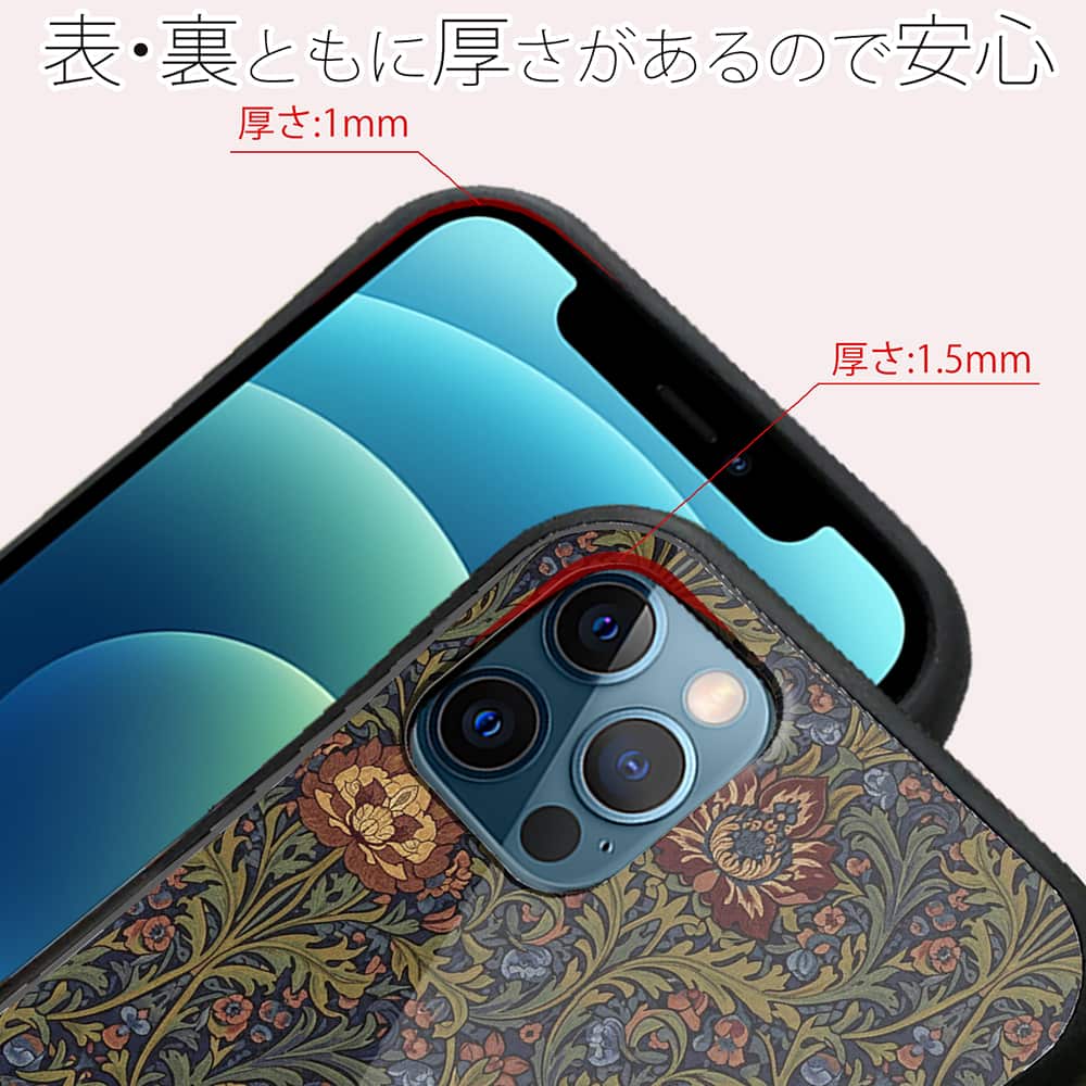 側面はゴムのように柔らかいTPU素材で、背面は衝撃に強いアクリル樹脂で、スマホ本体を守ります。
