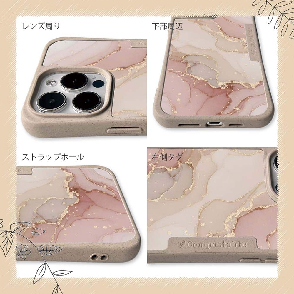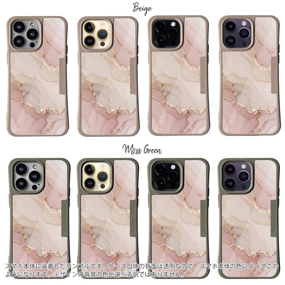 【Compos-Case】くすみカラーマーブル調 ピンク&ゴールド