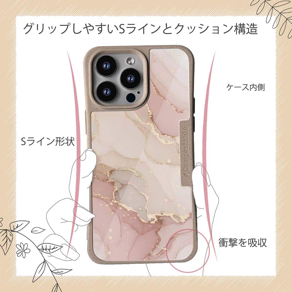 コンポスケースは、環境負荷低減を目的に開発されたスマホケースです。従来のスマホケースと比べCO2排出量を50%削減。しかも、循環型社会に対応した素材を使ったケースです。【コンポスケースの特徴】生分解性プラスチックと再生プラスチック製デザインシートでシーンに合わせて着せ替え