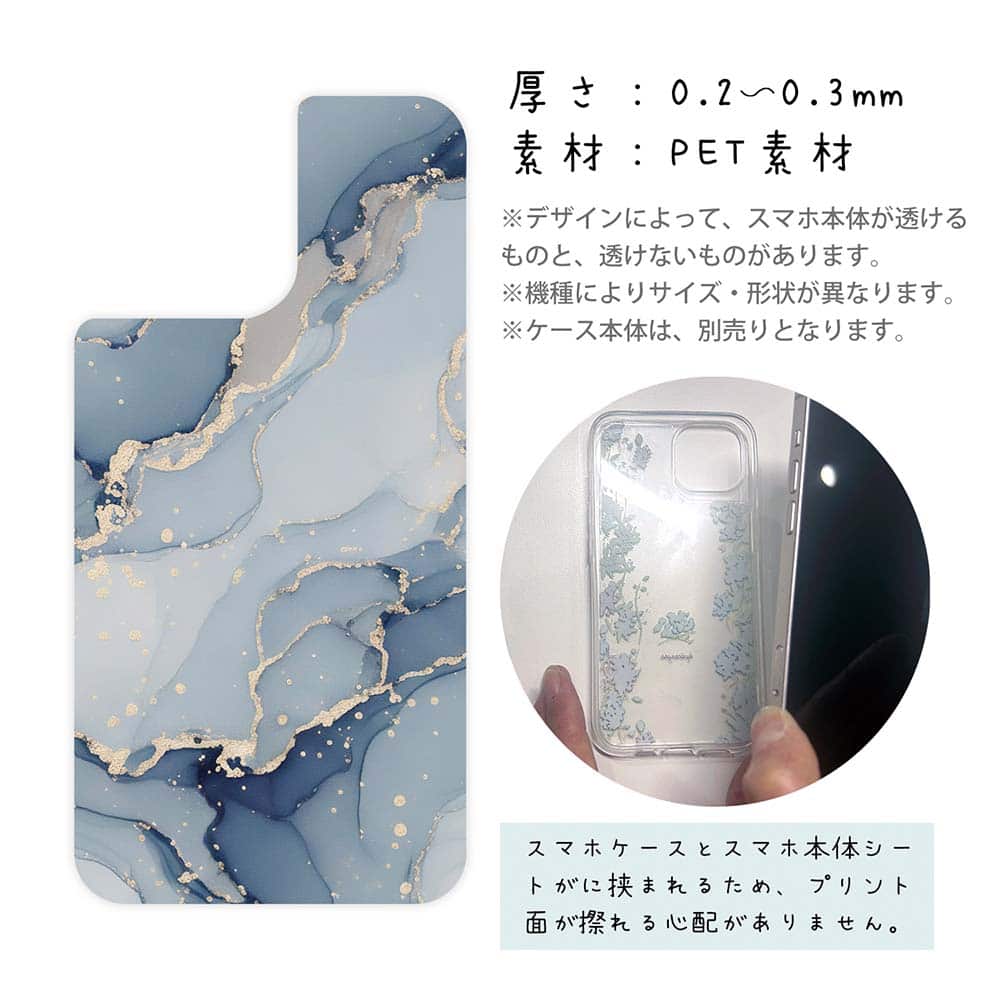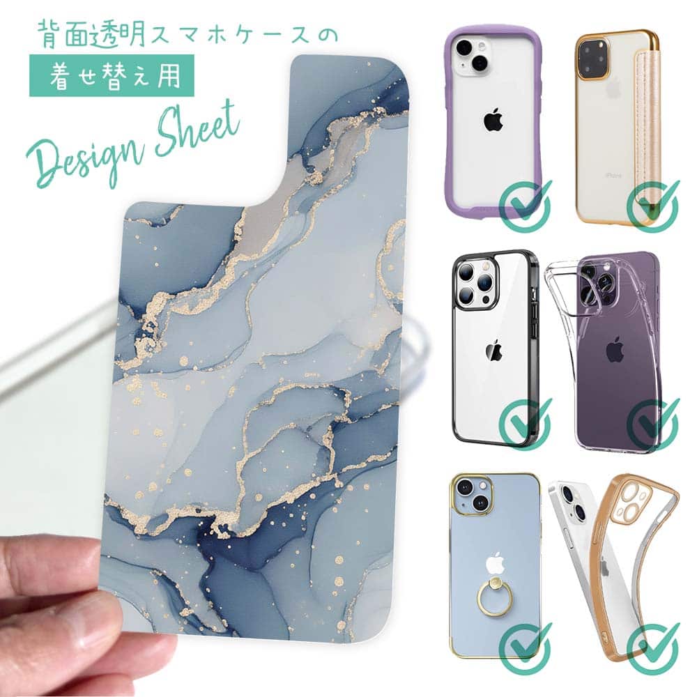 【デザインシート】くすみカラーマーブル調 ブルー&ゴールド