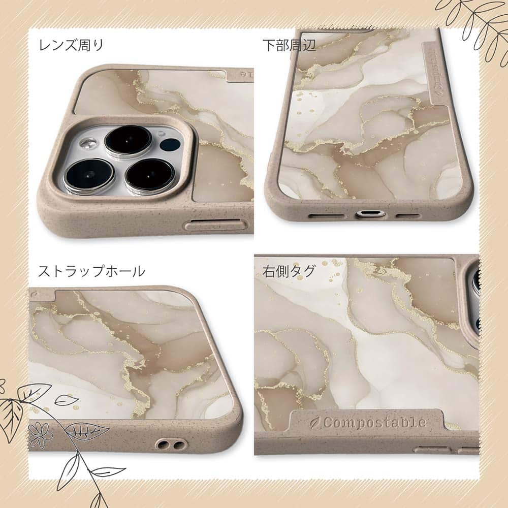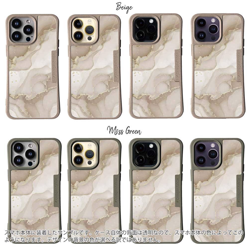 【Compos-Case】くすみカラーマーブル調 ベージュ&ゴールド