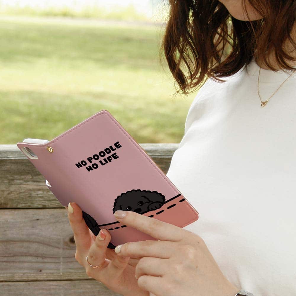 【手帳型】何か気になるプードル_ブラック(wakat)