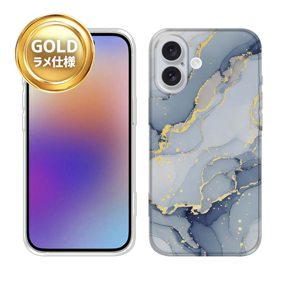 【TPU】くすみカラーマーブル【ラメ】 ブルー&ゴールド