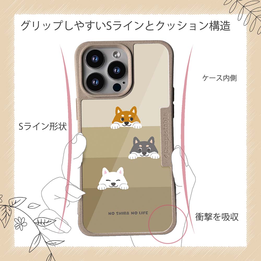 【コンポスケースの特徴】生分解性プラスチックと再生プラスチック製デザインシートでシーンに合わせて着せ替えグリップしやすいクッション構造本体重量35gと軽い(従来比-30%)衝撃に強いSライン形状究極に押しやすいボタン設計液晶画面、カメラ・レンズを保護生分解性プラスチックだけど割れない 脱着も容易背面は指紋防止加工【本体サイズ】