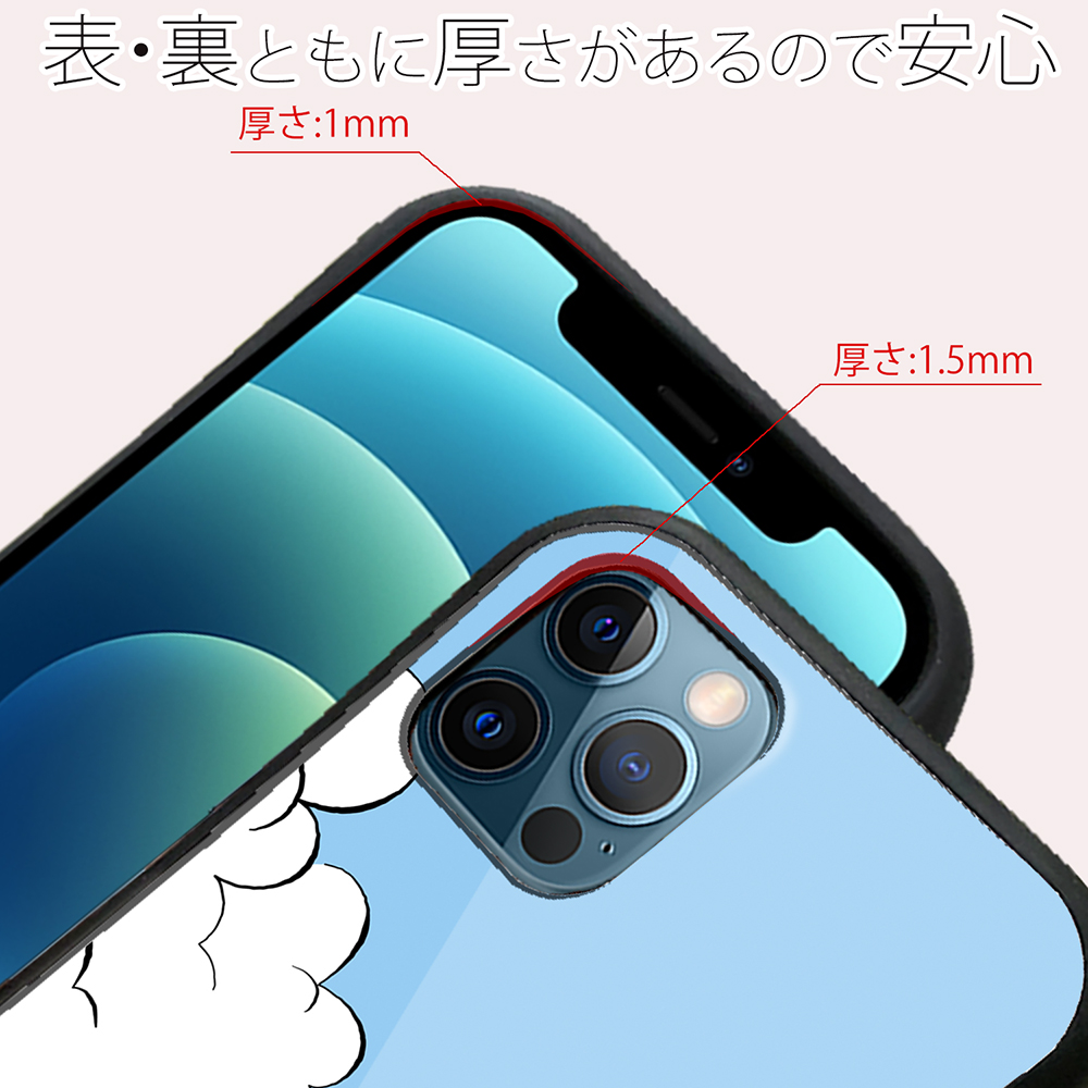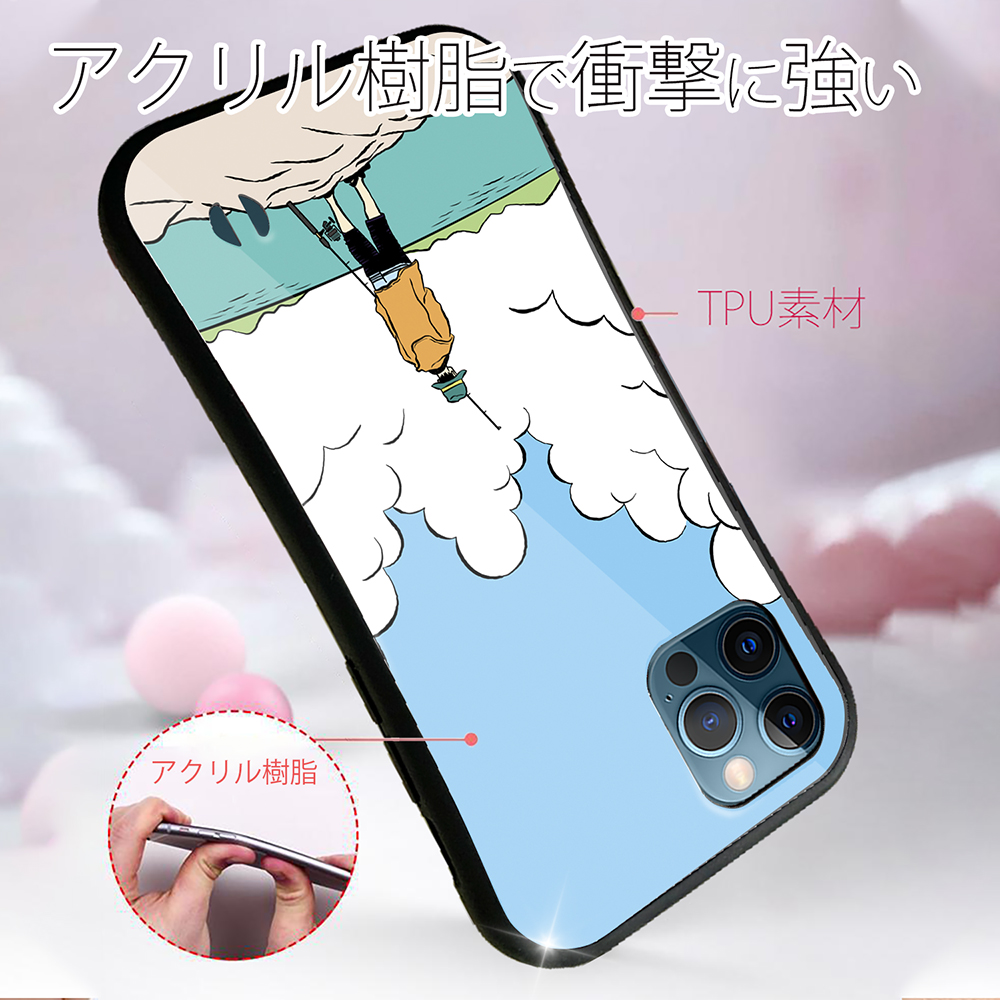 側面はゴムのように柔らかいTPU素材で、背面は衝撃に強いアクリル樹脂で、スマホ本体を守ります。