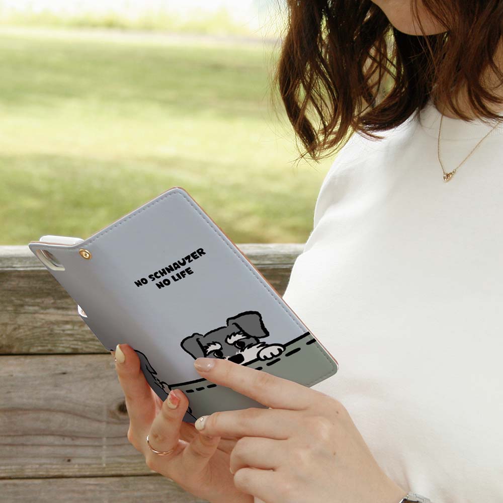 【手帳型】何か気になるミニチュアシュナウザー_ソルト&ペッパー(wakat)