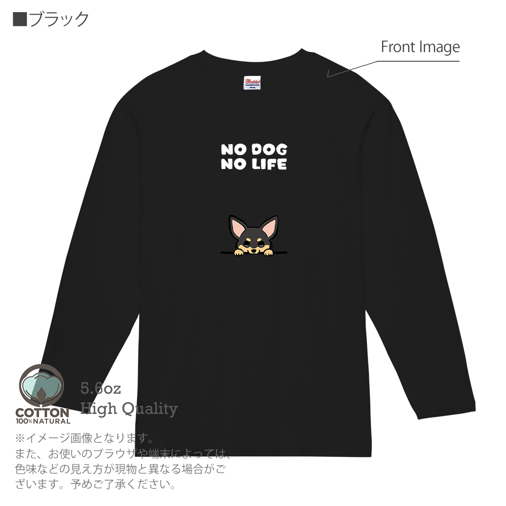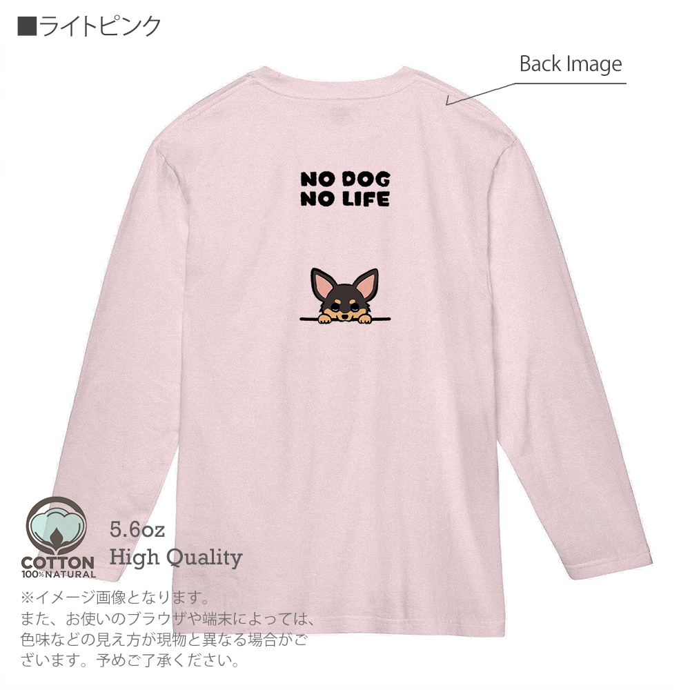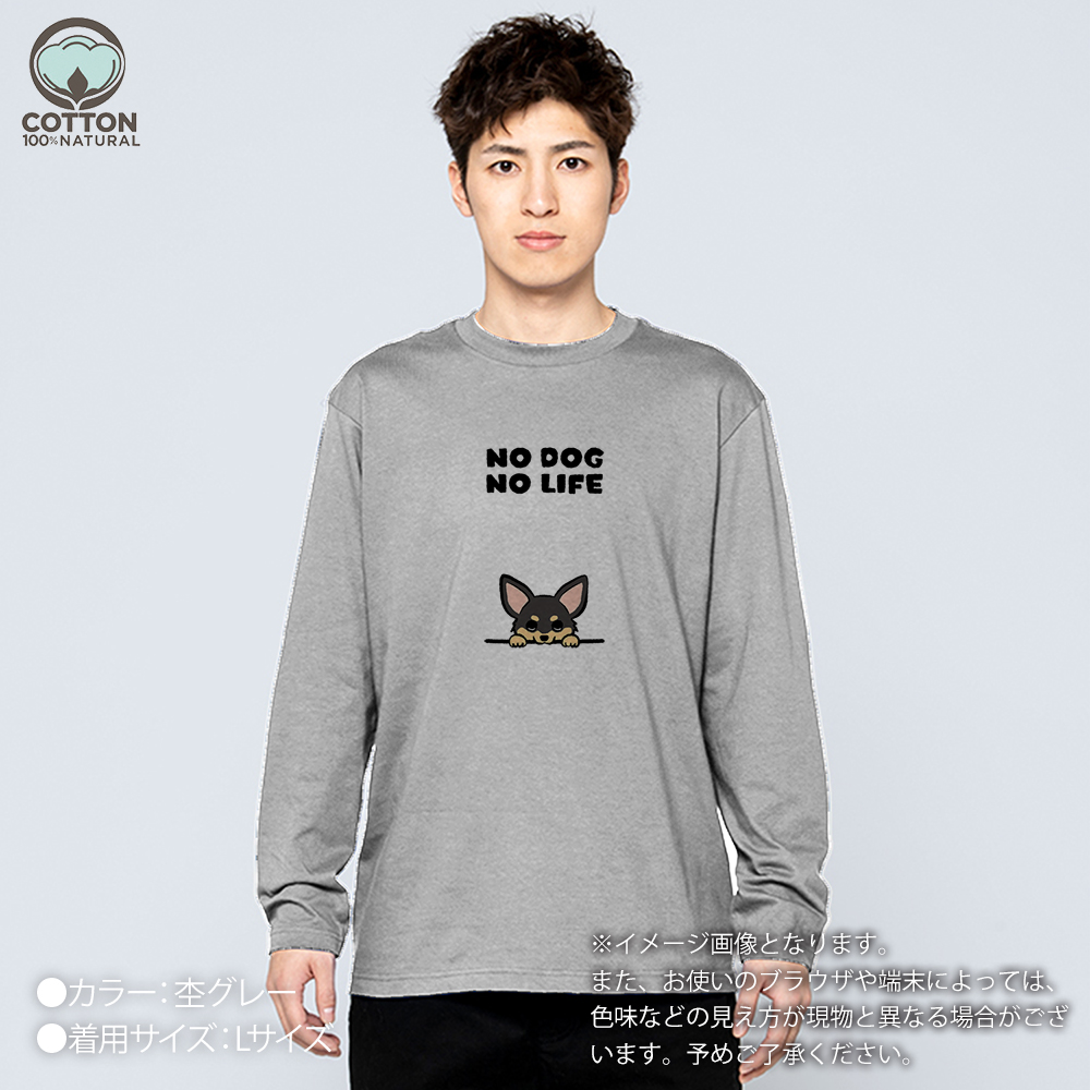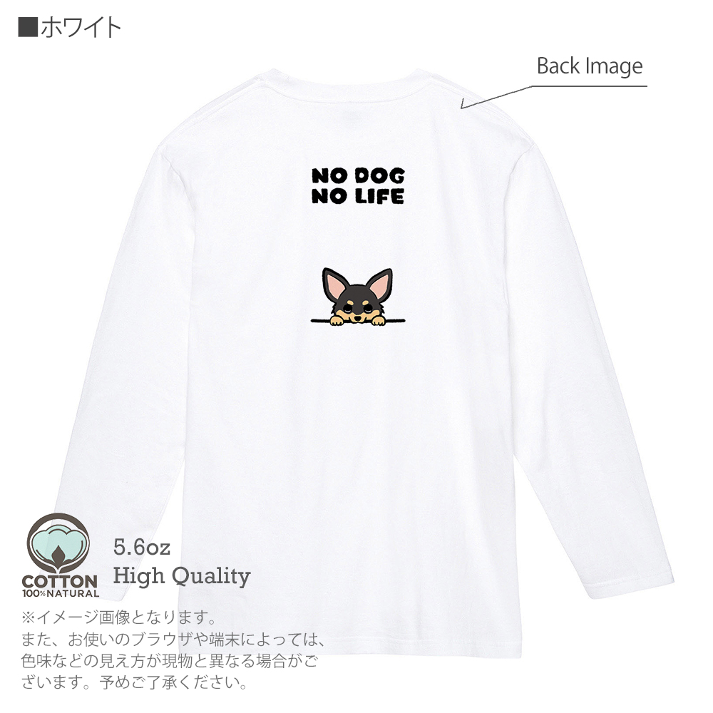 【長袖Tシャツ】何か気になるチワワ_ブラックタン(wakat) 5.6oz Cotton:100%